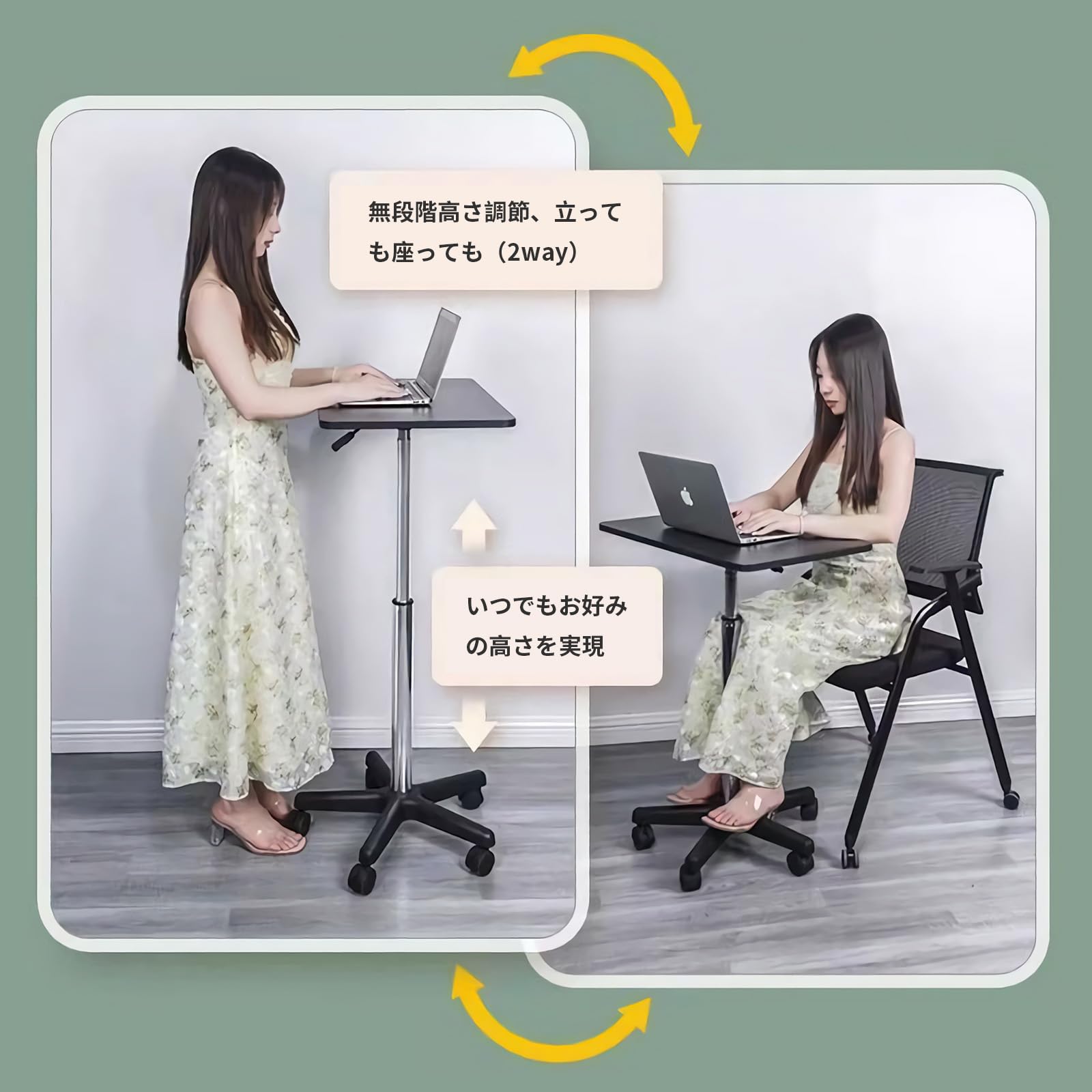 Aikenn 昇降デスク 無段階昇降 スタンディングデスク ノートpcデスク ノートPCテーブル ミニテーブル モバイルテーブル テレワーク 演台 昇降式 キャスター付 ガス圧 ノートパソコン リフトテーブル 幅60cm×奥行39cm 高さ調整59cm〜80cm 耐荷重25kg (ブラック)