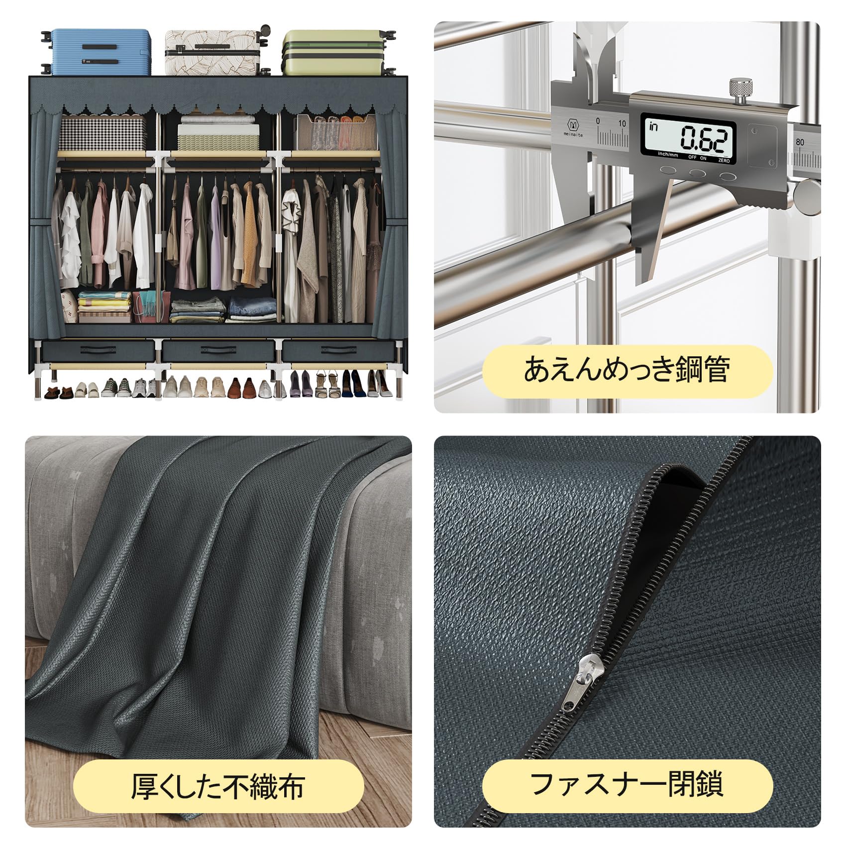 SUKIZUKI ワードローブ カバー付き 大容量 ハンガーラック 服 収納 クローゼット 頑丈 おしゃれ 組み立て式 メタルラック 衣類収納棚 防水 防塵 防汚 幅210CM×奥行45CM×高さ170CM