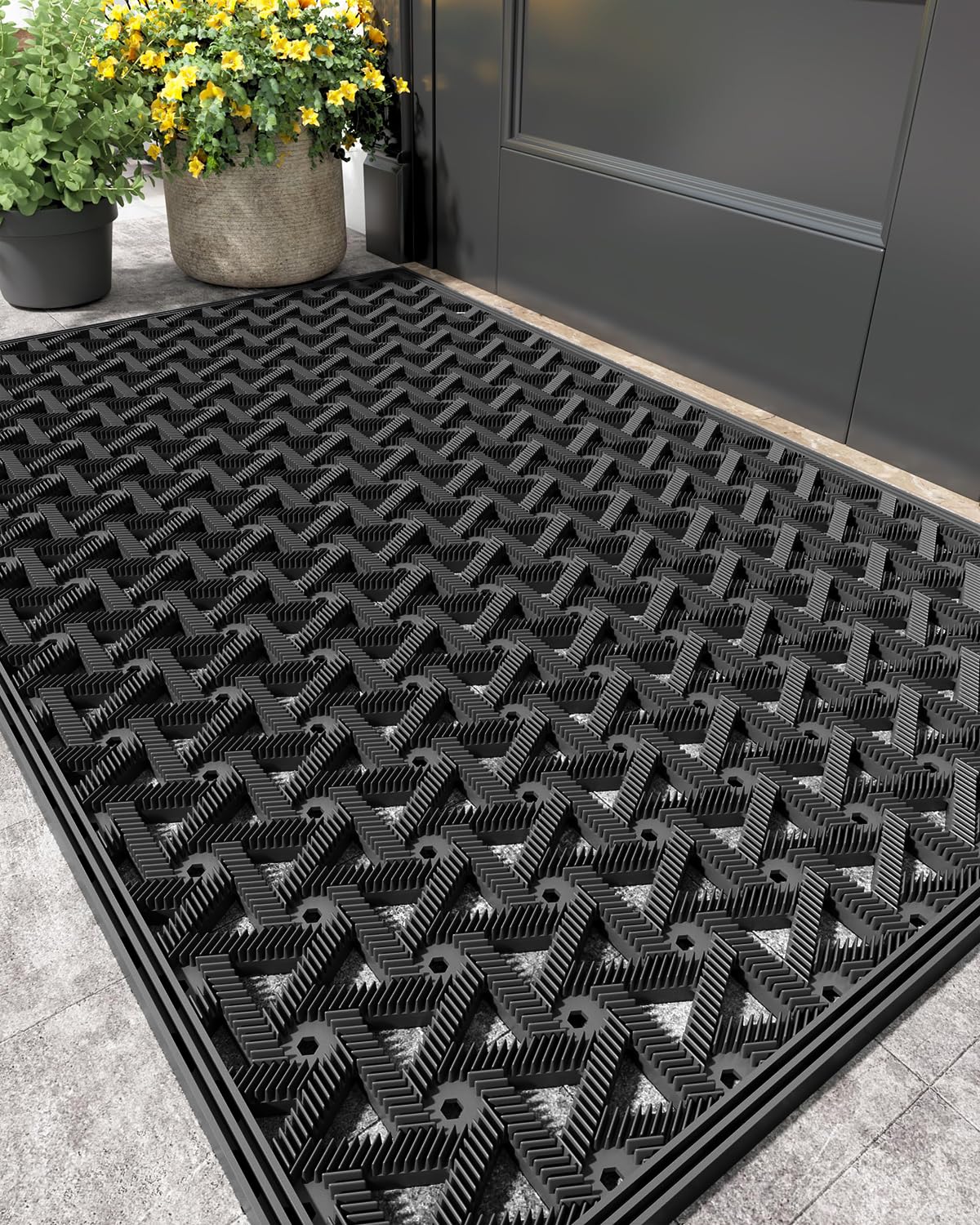CORFEEL 玄関マット 屋外 泥落とし ドアマット 業務用 家庭用 (61x91cm, ブラック)