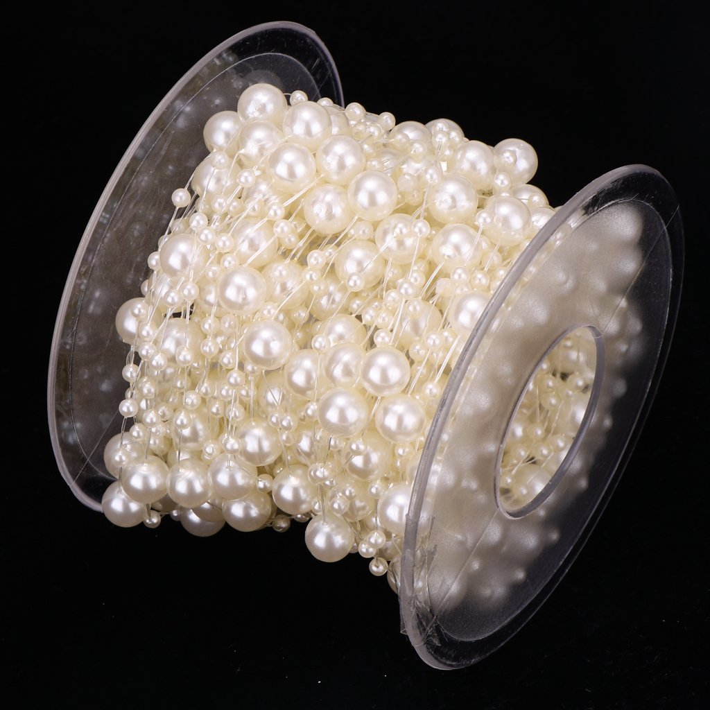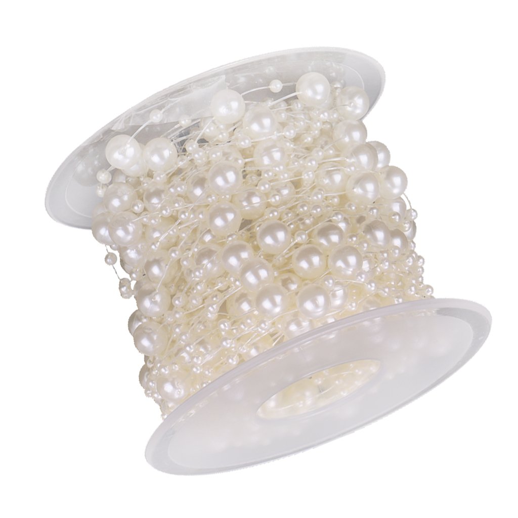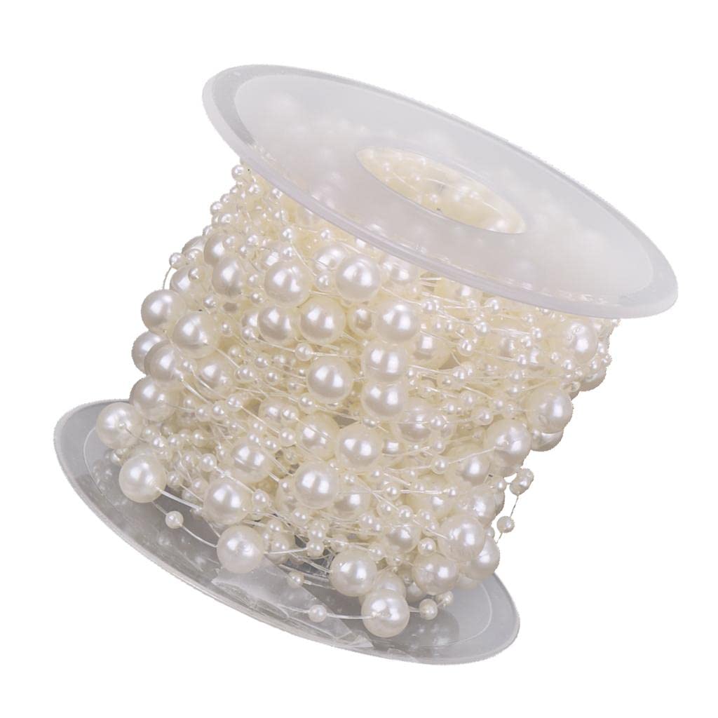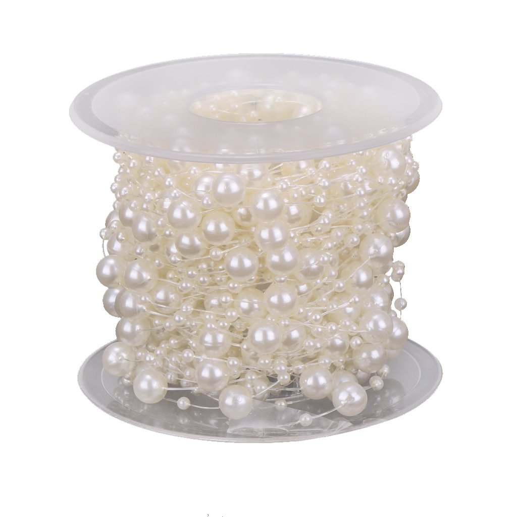 Milageto 15メートルのパールガーランドパールチェーン結婚式用装飾パールコードリボン - ベージュ