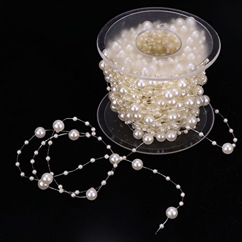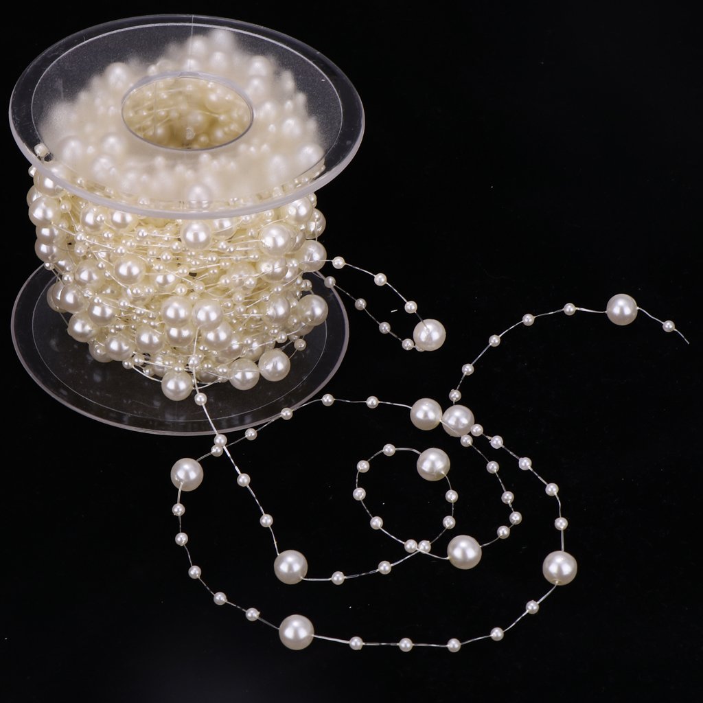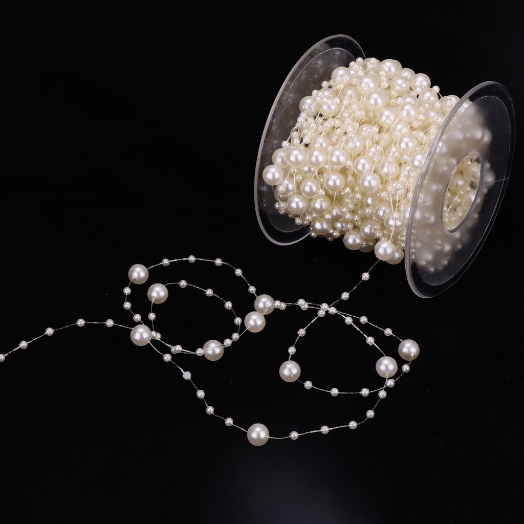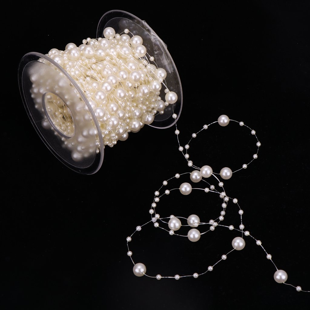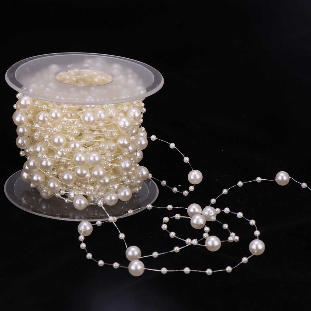 Milageto 15メートルのパールガーランドパールチェーン結婚式用装飾パールコードリボン - ベージュ