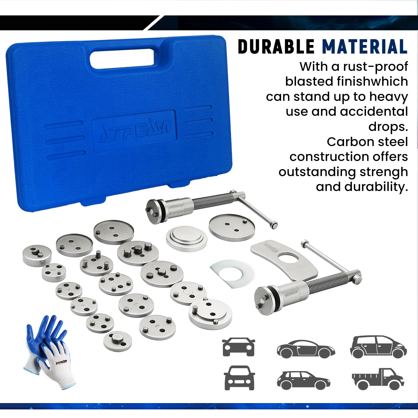 ATPEAMブレーキキャリパー圧縮ツールヘビーデューティキャリパーコンプレッサーキット24PCSブレーキスプレッディングツール