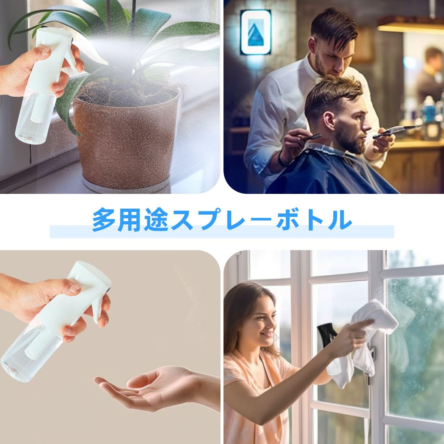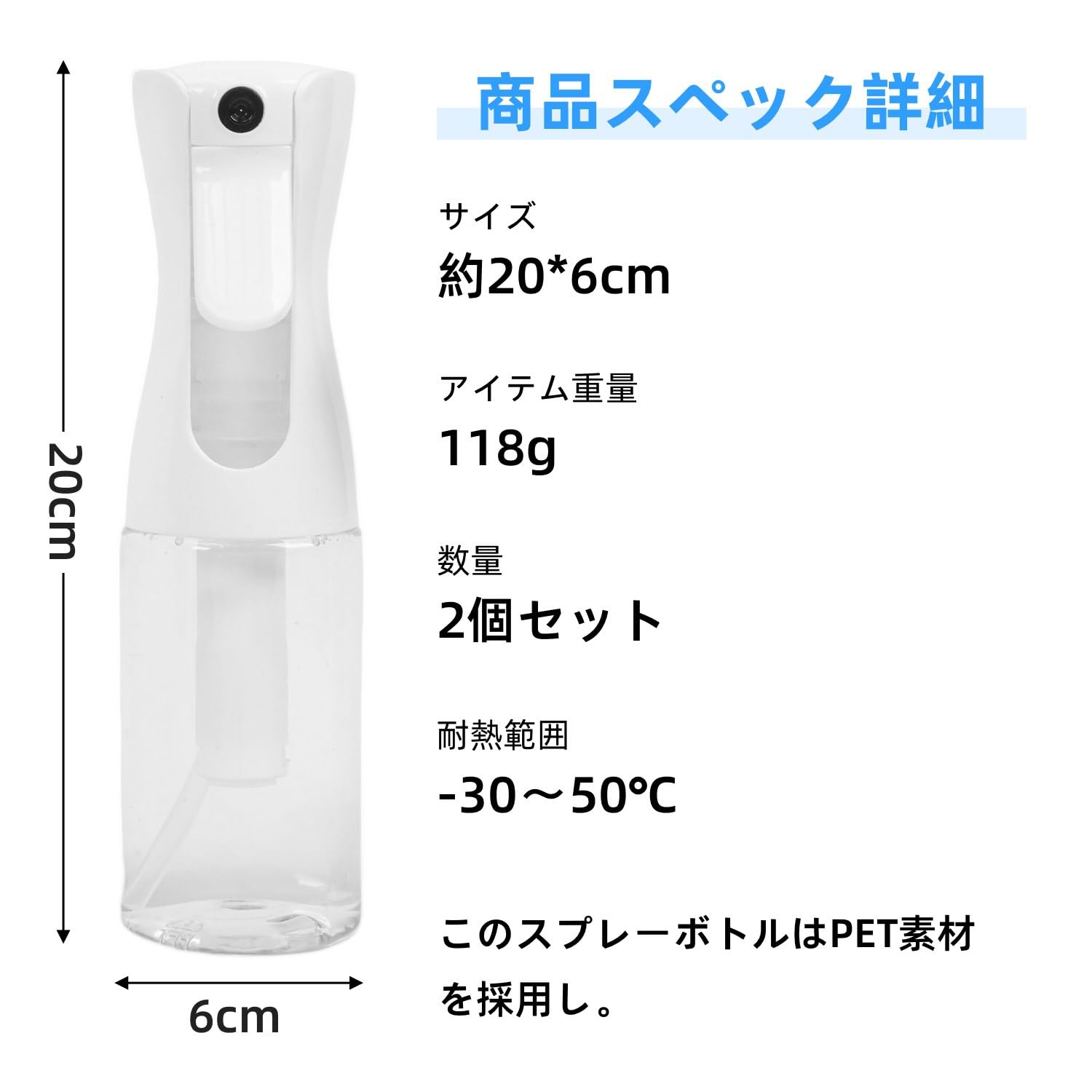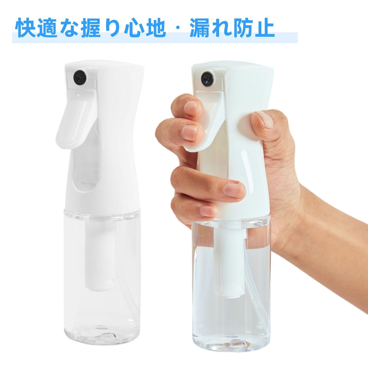 2個セット スプレーボトル 連続ミスト 200ml 超微粒子0.3mm 極細ミスト 霧吹き アルコール対応 化粧水詰め替え用 PET素材 家庭・美容院・園芸・車掃除向け 漏れ防止