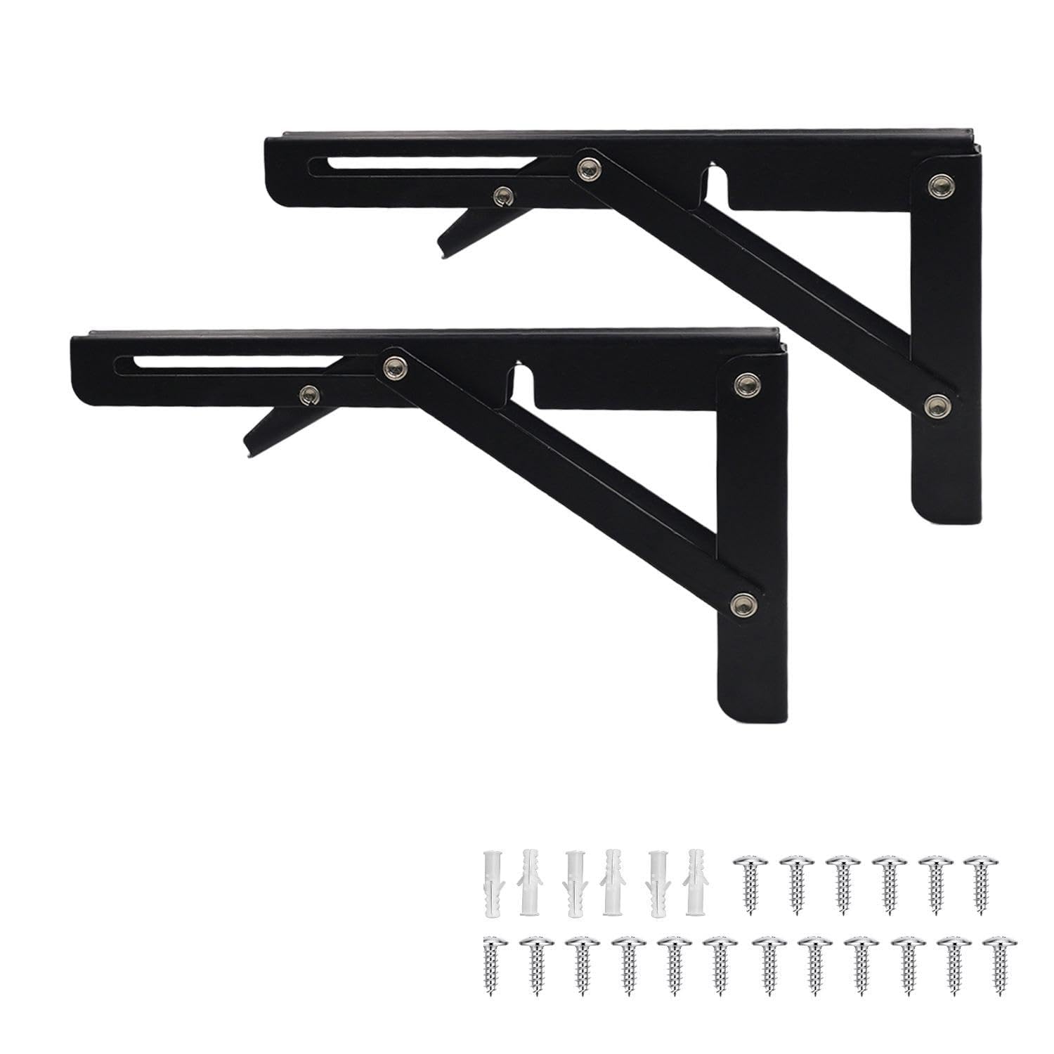 KKLM 折りたたみブラケット棚受け金具 L字折りたたみブラケット 耐荷重150kg 壁掛け棚受け金具 吊り棚 DIY棚支え 2個セット ネジ付き ブラック (20cm)
