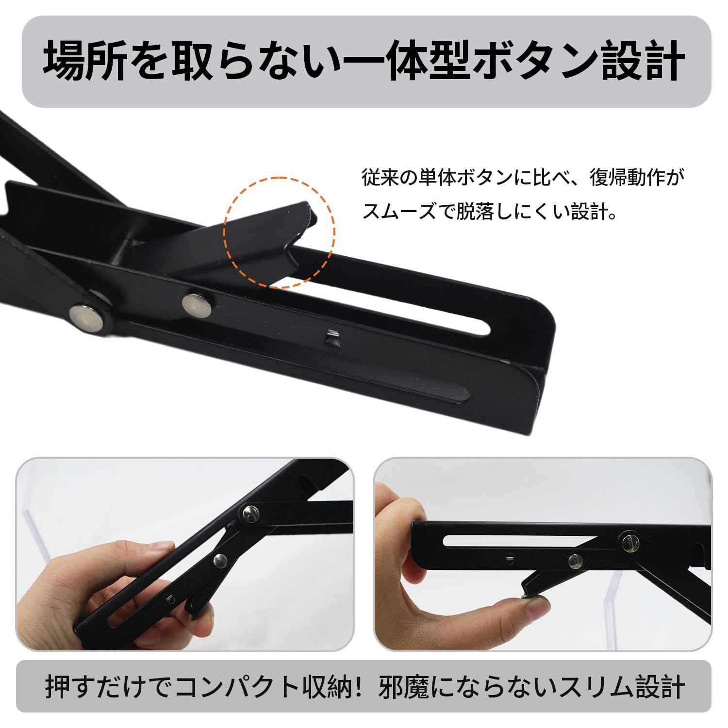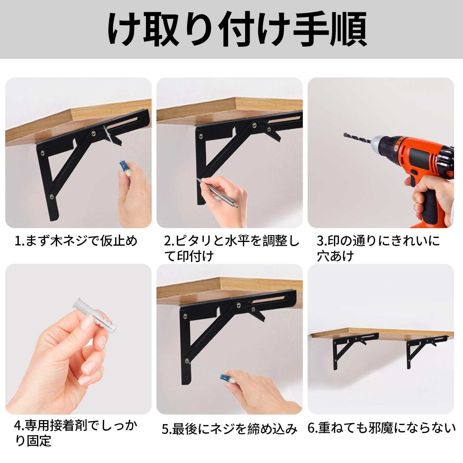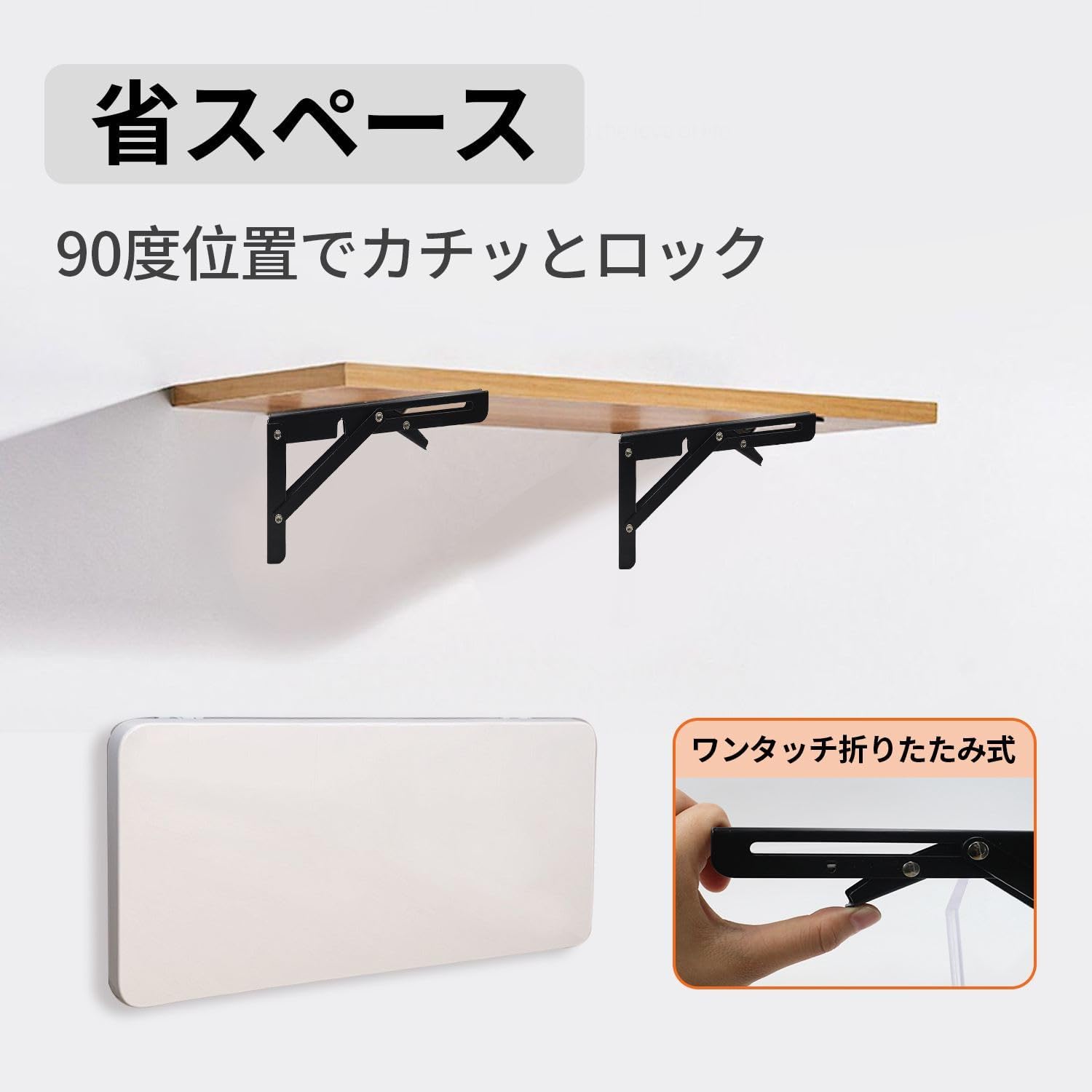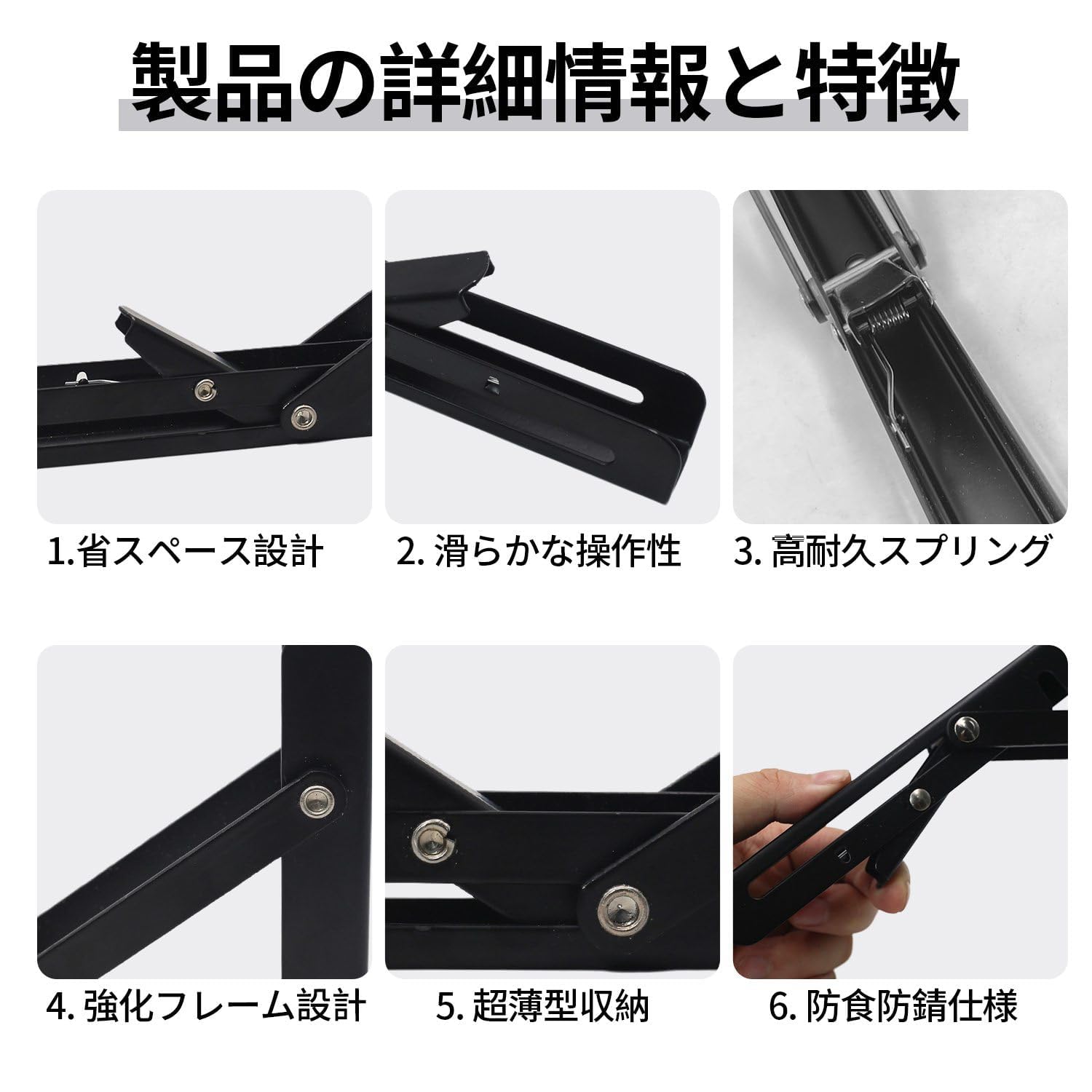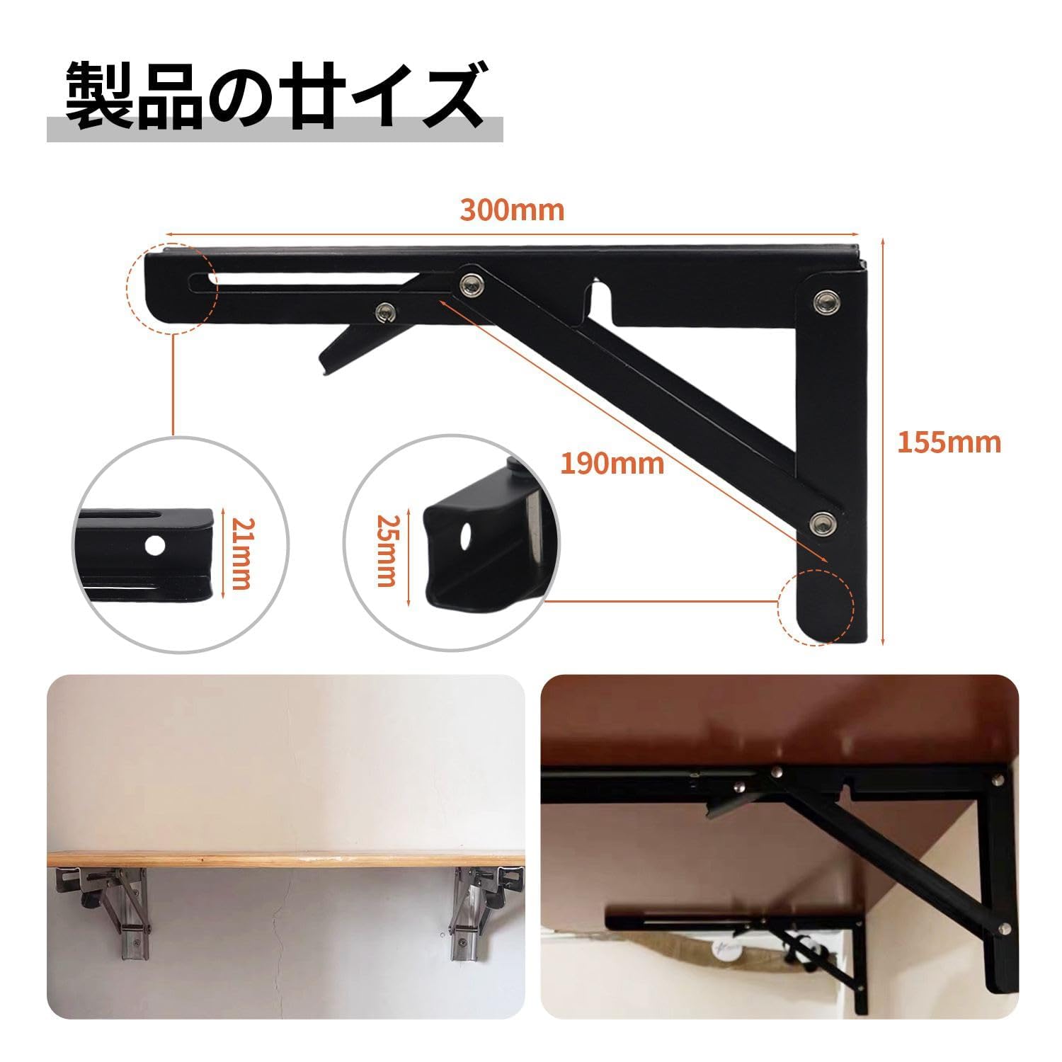 棚受け金具 折りたたみ L字型ブラケット棚支え 耐荷重50kg 2本セット 20cm (ブラック)
