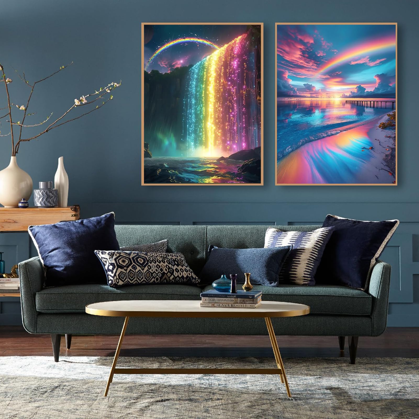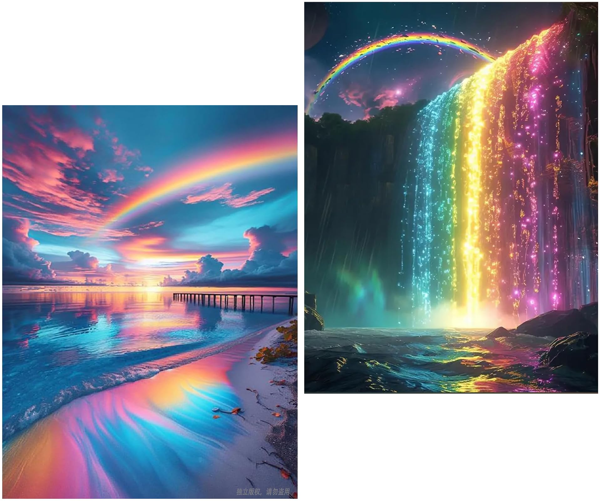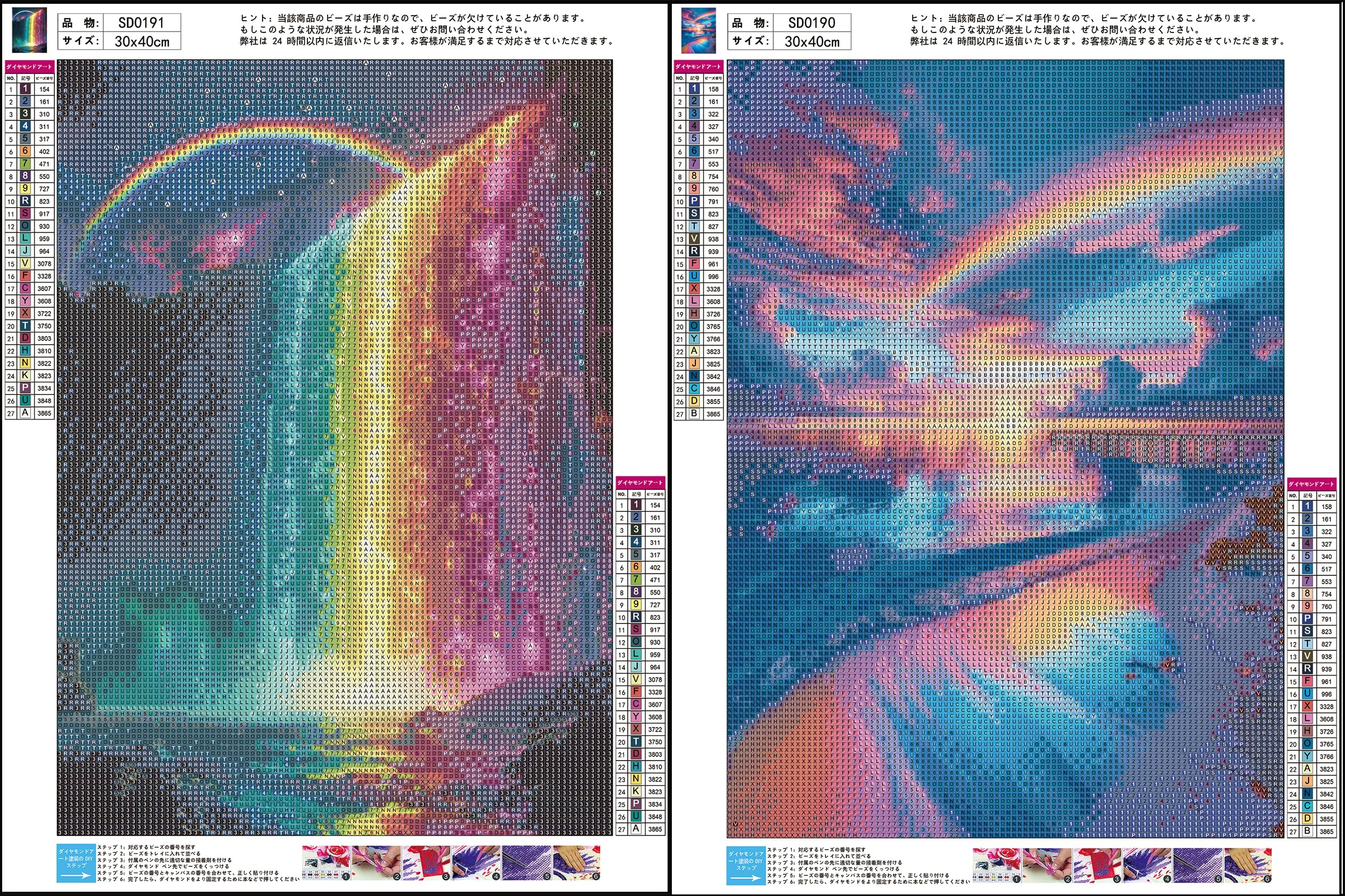 Amyaker ダイヤモンドアート キット 四角いビーズ 全面 2個セット 日本語キャンバス ダイアモンドビーズ絵画キット DIY 手作り絵画 モザイクア 5D モザイクアート ダイヤモンド塗装 全面貼り付けタイプ 30x40cm オーロラ 虹