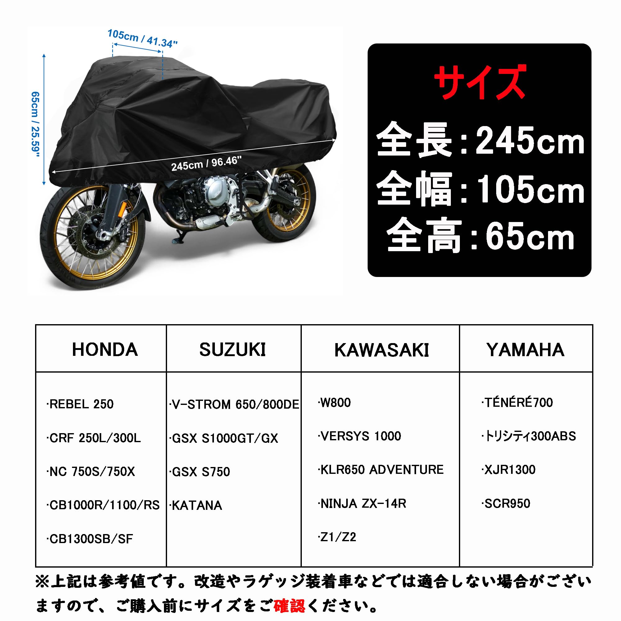 Bst Jyob バイクカバー オックス450D 厚手 【バイク専門家監修 防風プロテクション 強風に負けない】 丈夫 防風 防炎 耐熱 防水 撥水 紫外線防止 盗難防止 スクーター/原付/125cc/250cc用/400cc用/小型/普通/大型/軽二輪など 3XL:全長265*前高130*リア高105