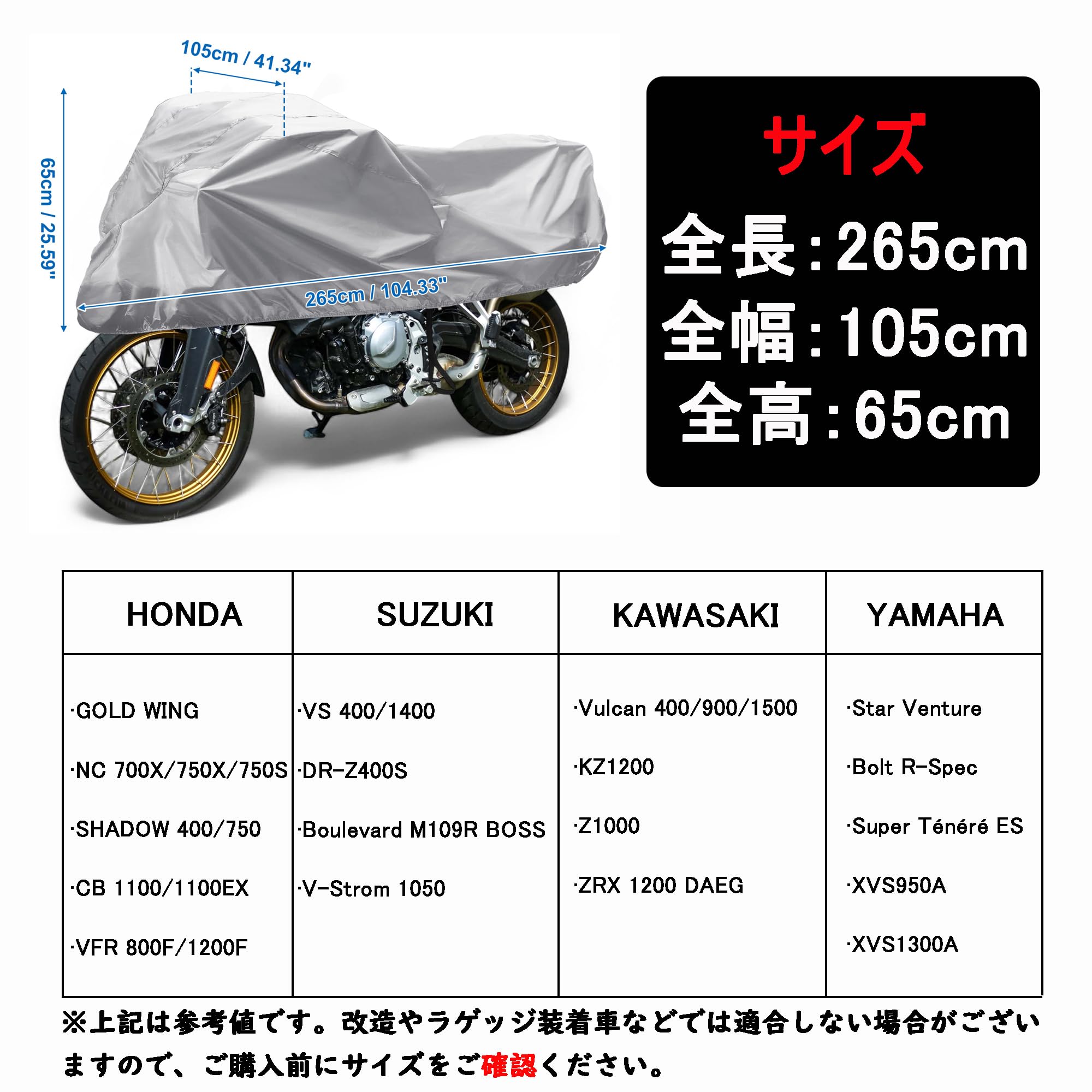 Bst Jyob バイクカバー オックス600D 極厚 【多サイズ展開 リアbox対応サイズあり 厚さ選択】 丈夫 厚手 防風 耐熱 防炎 防水 撥水 強紫外線防止 盗難防止 スクーター/原付/125cc/250cc用/400cc用/小型/普通/大型/軽二輪など 2XL:全長245*前高125*リア高100