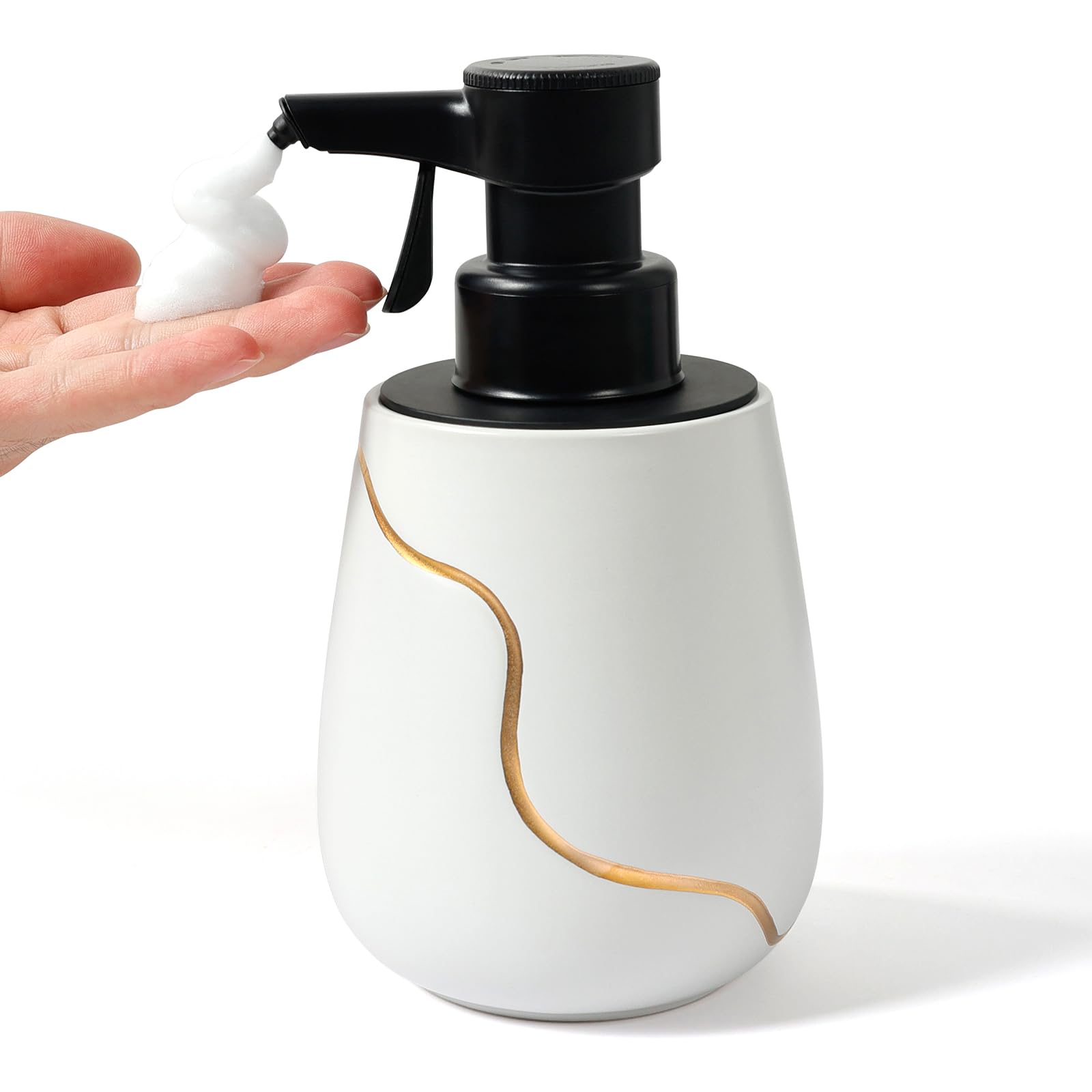 Umlaca ソープディスペンサー 泡 ハンドソープ ディスペンサー 陶器 手動 ハンドソープ 泡 ボトル 押しタイプ ポンプ式 広口 詰め替え 台所 キッチン 洗面所 トイレ バスルーム お風呂場 (ブラック)