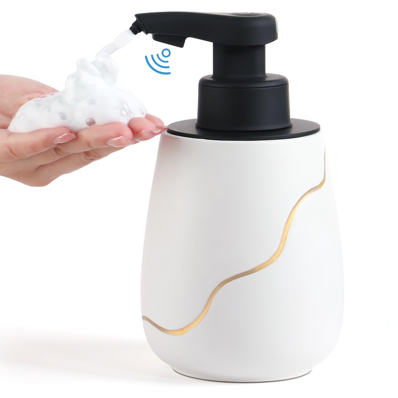 Umlaca ソープディスペンサー 泡 陶器 泡ハンドソープ ディスペンサー セラミック ポンプ 詰め替え容器マーブル模様 320ml 広口 手動 押しタイプ 洗剤ボトル 台所 キッチン 洗面所 トイレ バお風呂場などに適用