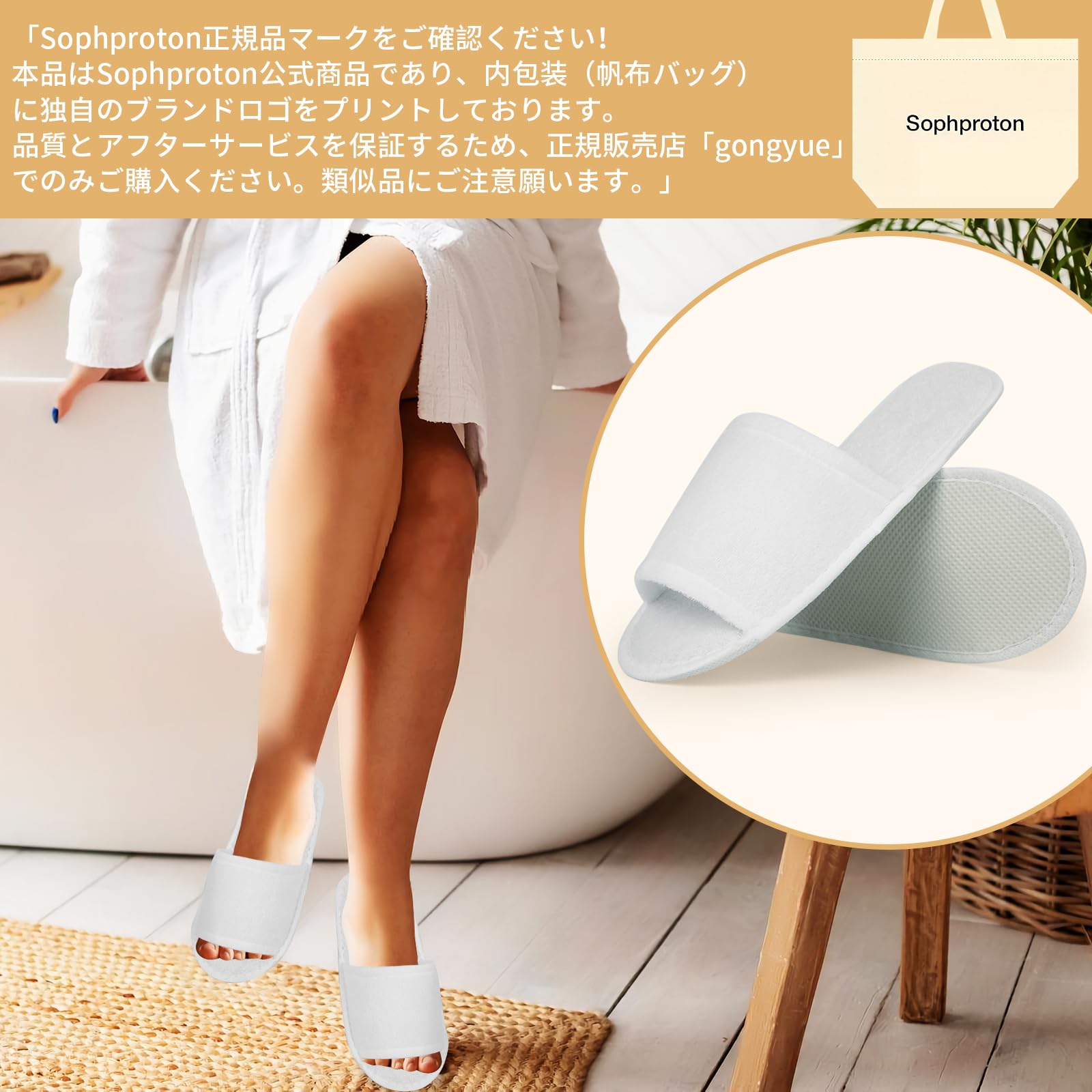 [Sophproton] 業務用30足 使い捨てスリッパ タオル地 厚底6mm 個別包装 ホテル 旅館 介護施設向け (28×11cm) ロゴ入り帆布バッグ付き