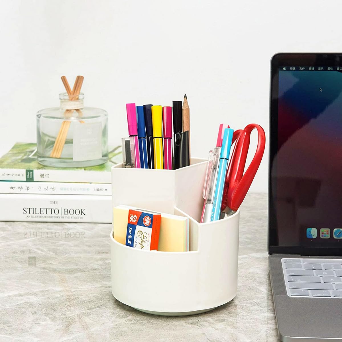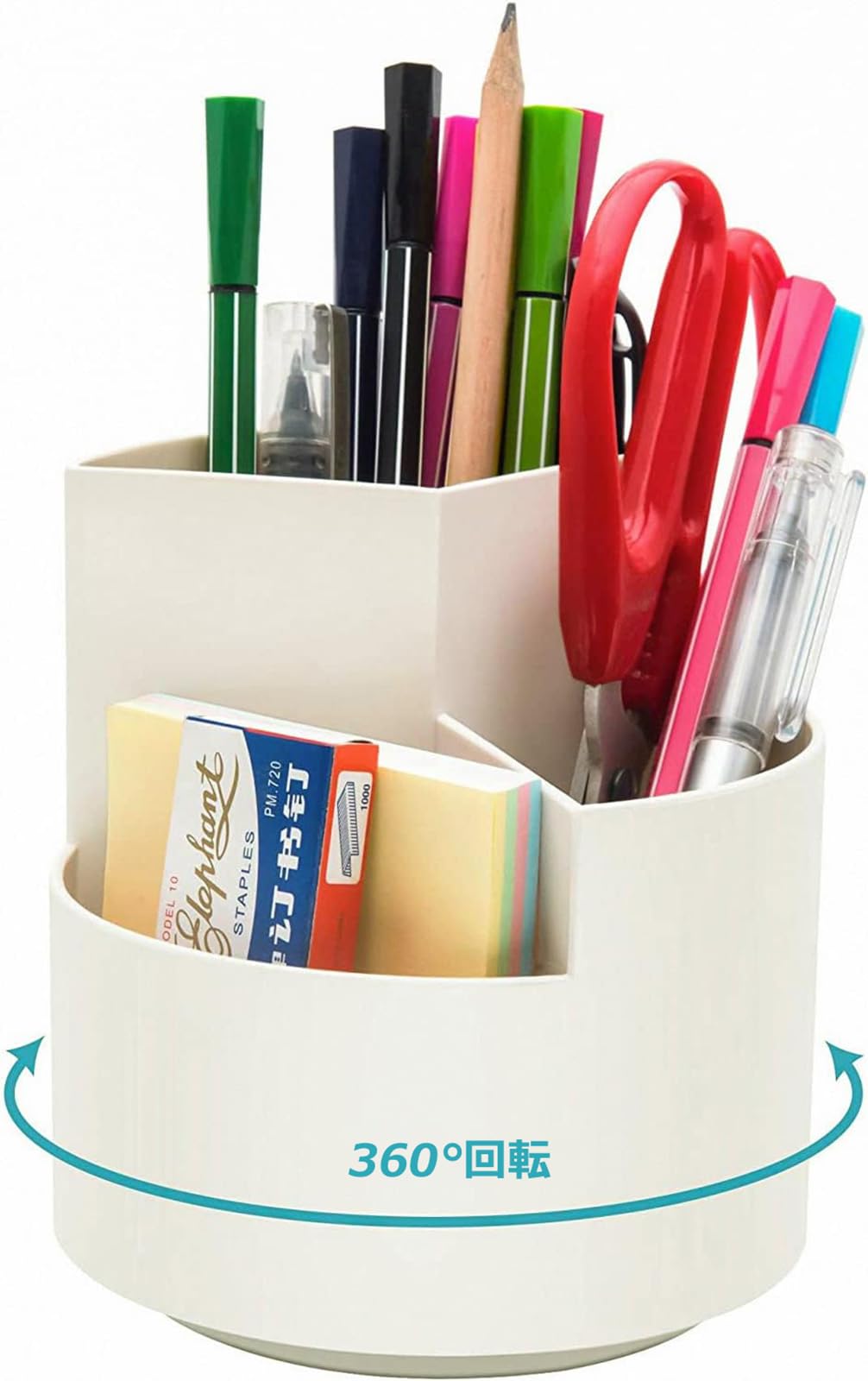 ペン立て 360度回転 ペンスタンド 大容量3段分類 オフィス&家庭用 文房具 化粧品収納 小物分類卓上収納 多機能回転ペンホルダー 卓上整理ボックス 収納ボックス シンプルデザイン