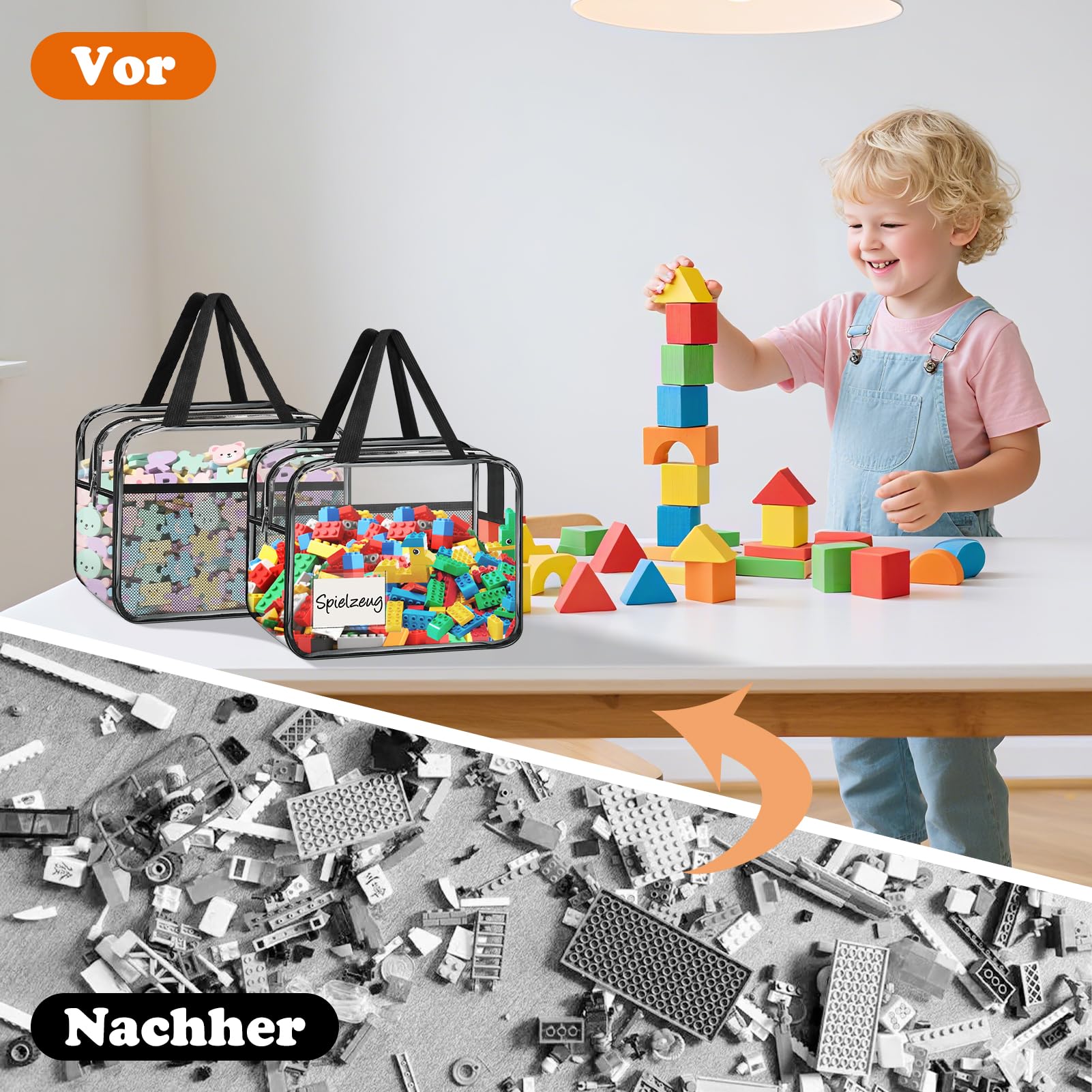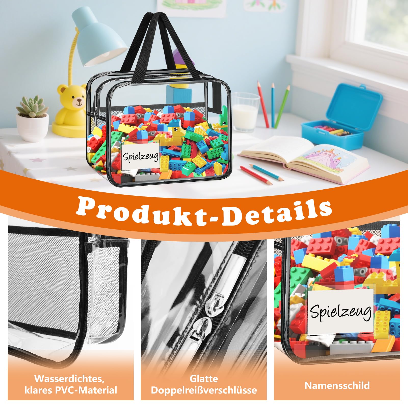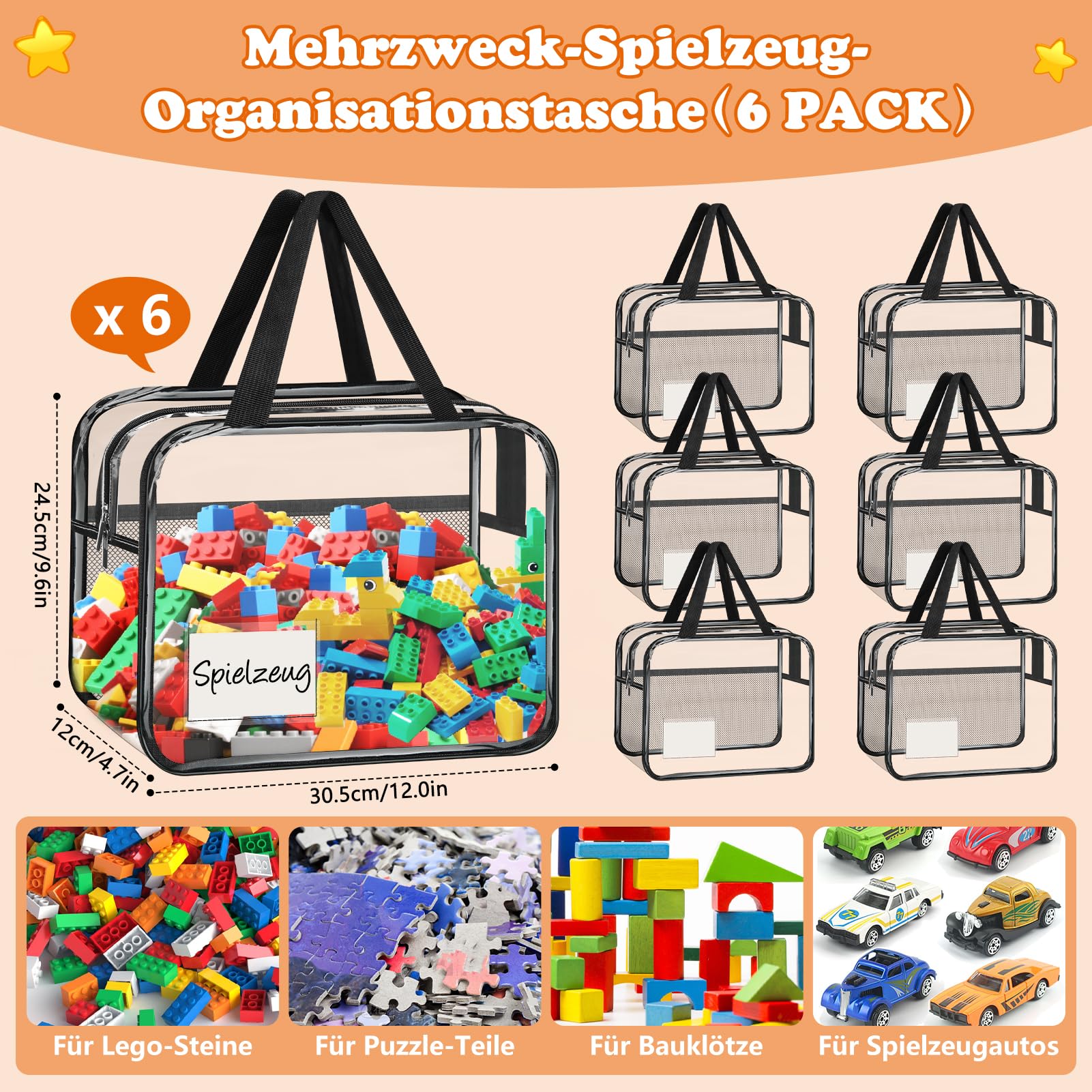 yazi レゴ収納バッグ 透明おもちゃオーガナイザー ファスナー付き 玩具収納ボックス ラベルと説明ポケット付き 6個セット 再利用可能 防水 子供のおもちゃオーガナイザー ボードゲーム・ブロック・パズル分類整理簡単 小物入れケース