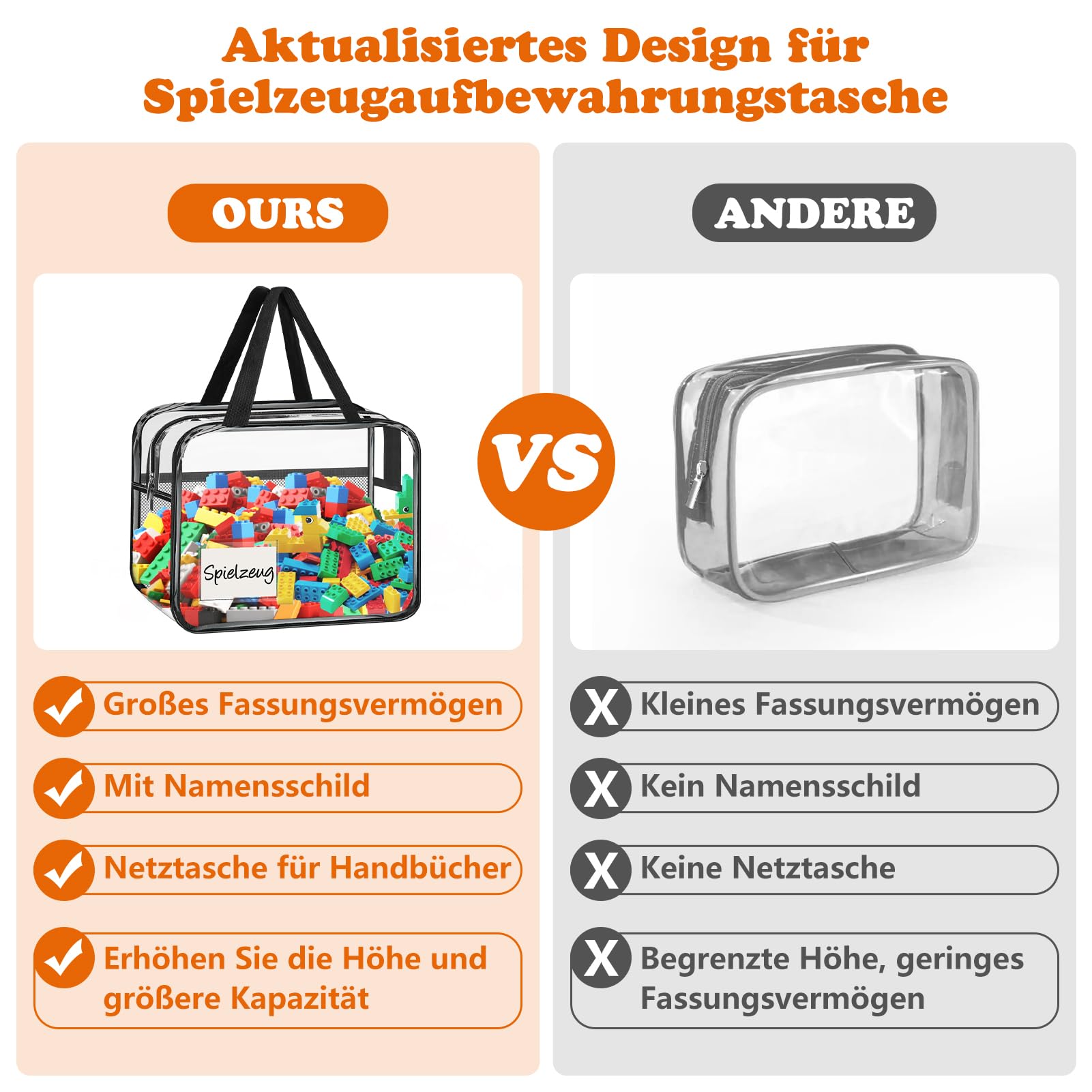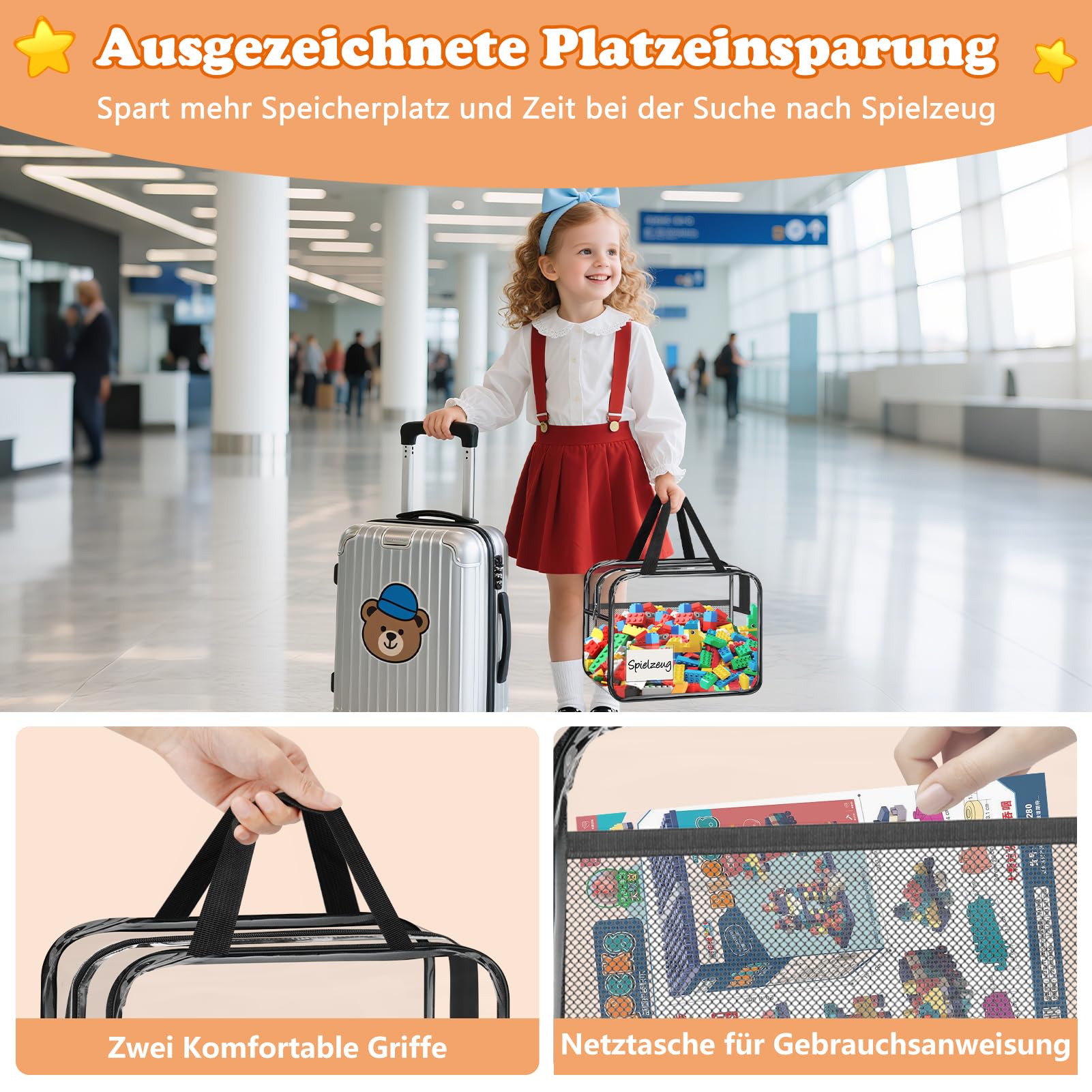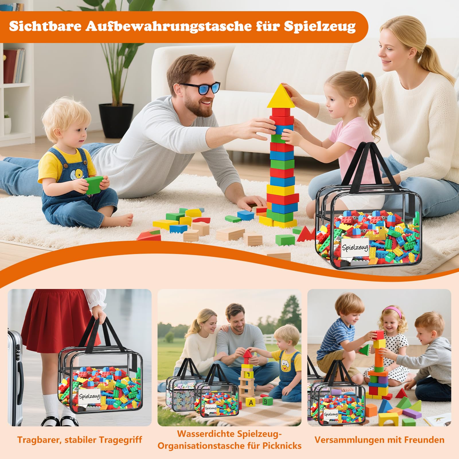 yazi レゴ収納バッグ 透明おもちゃオーガナイザー ファスナー付き 玩具収納ボックス ラベルと説明ポケット付き 6個セット 再利用可能 防水 子供のおもちゃオーガナイザー ボードゲーム・ブロック・パズル分類整理簡単 小物入れケース