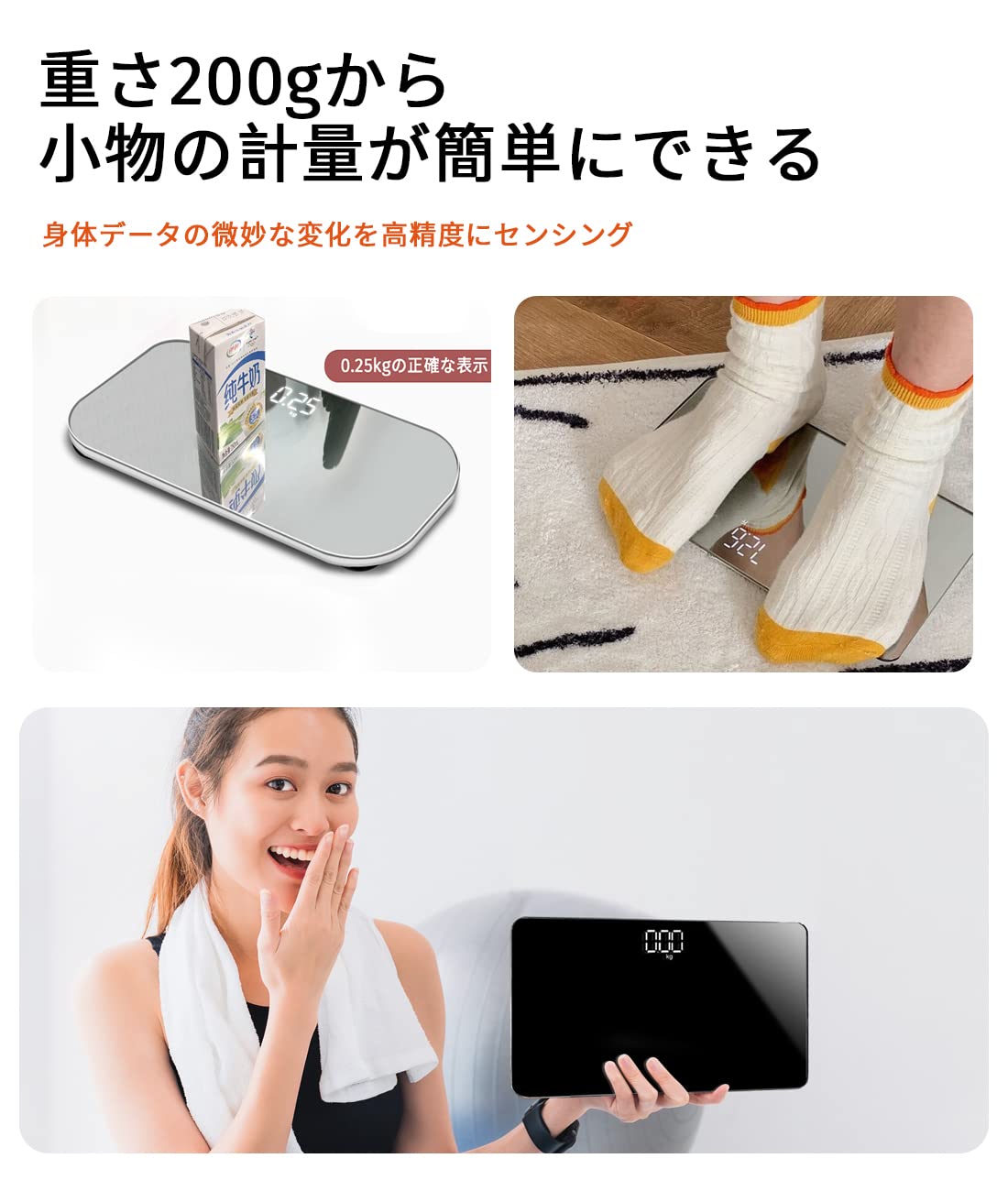 体重計 高精度 電力量表示 自動ON/OFF スマホ連動 Bluetooth対応 USBデータケーブルが付属