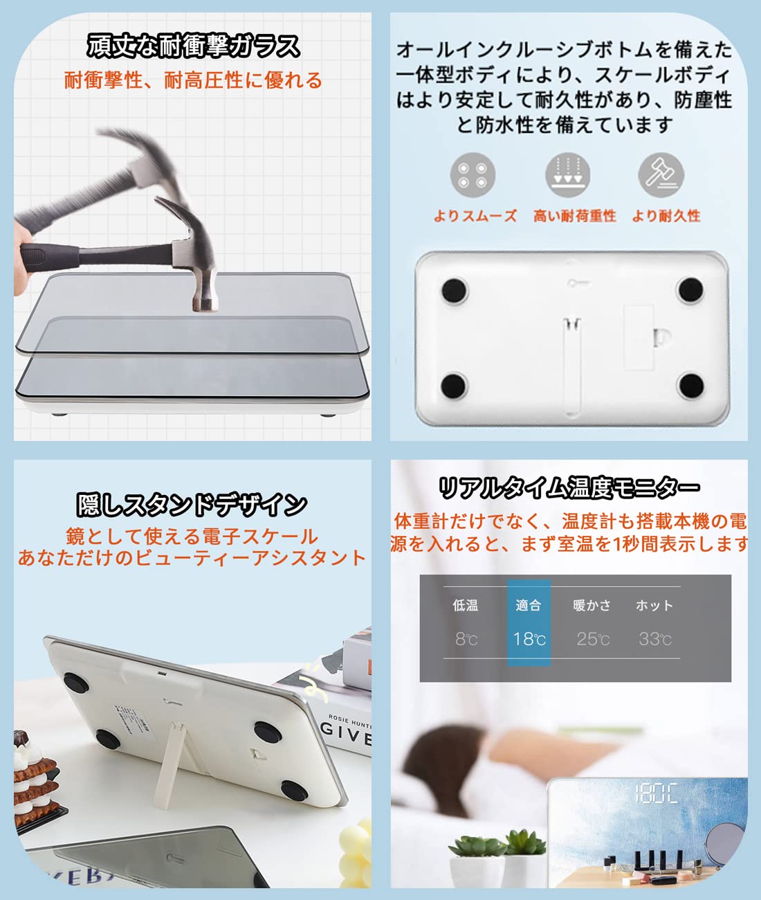 Absdefen ミニ電子はかり 鏡ミラー電子体重計 旅の体重計 ミニスケール強化ガラス 電源自動ON/OFF 180kgまで対応 高精度 安定した 高負荷に耐えられる 耐久性 コンパクトで便利 HDナイトビジョンディスプレイ フル画面はバニティーミラーとして使用可能 隠しスタンドデザイン 切り替え可能なユニット 健康管理 USB充電式 携帯型