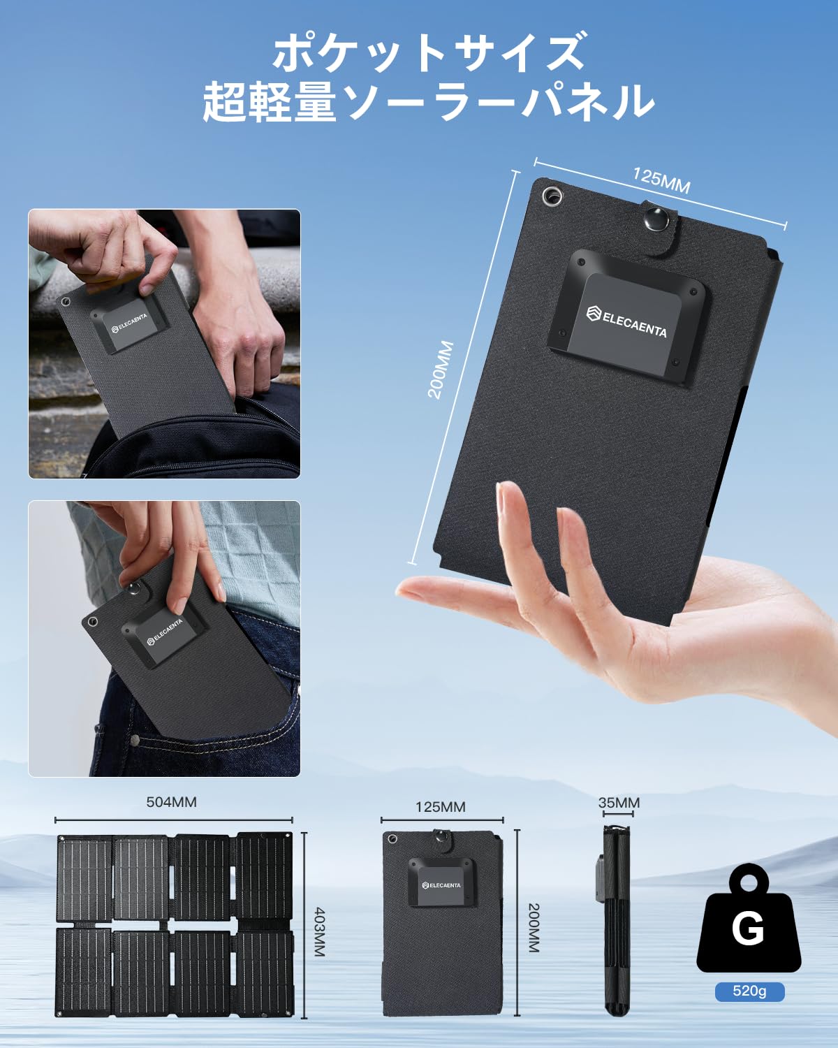 25W ソーラーパネル 小型 mini 太陽光パネル 折り畳み式 ソーラー充電器 500g軽い