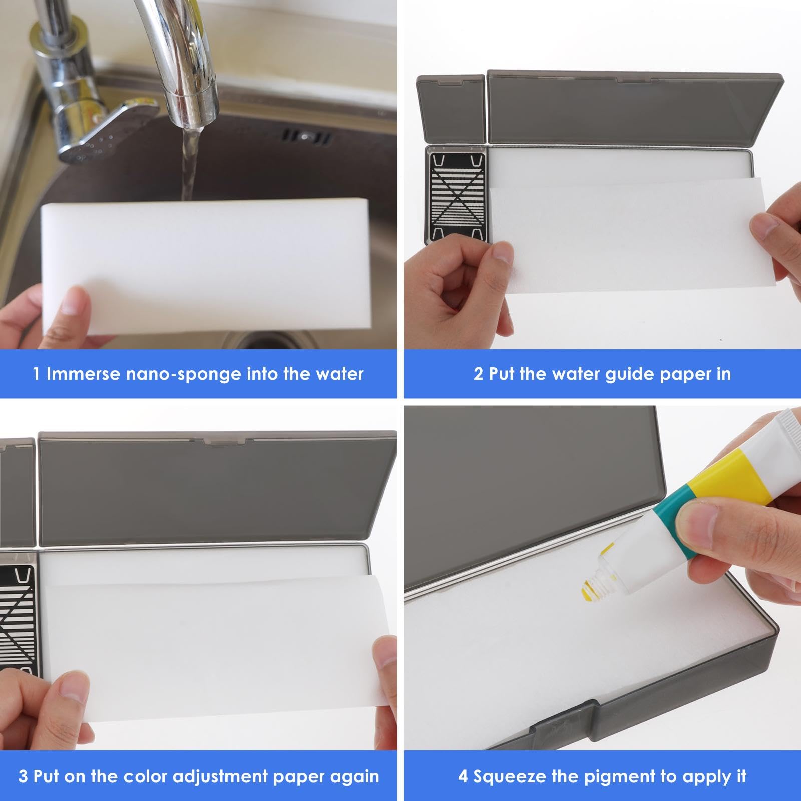 Folpus ペンウォッシュボックス付きウェットパレット、アクリル絵の具用パレット、細密画