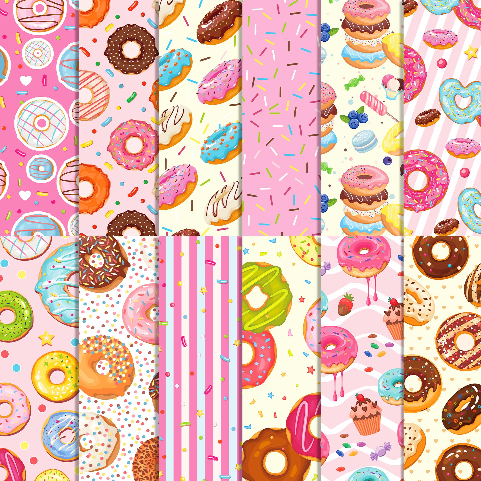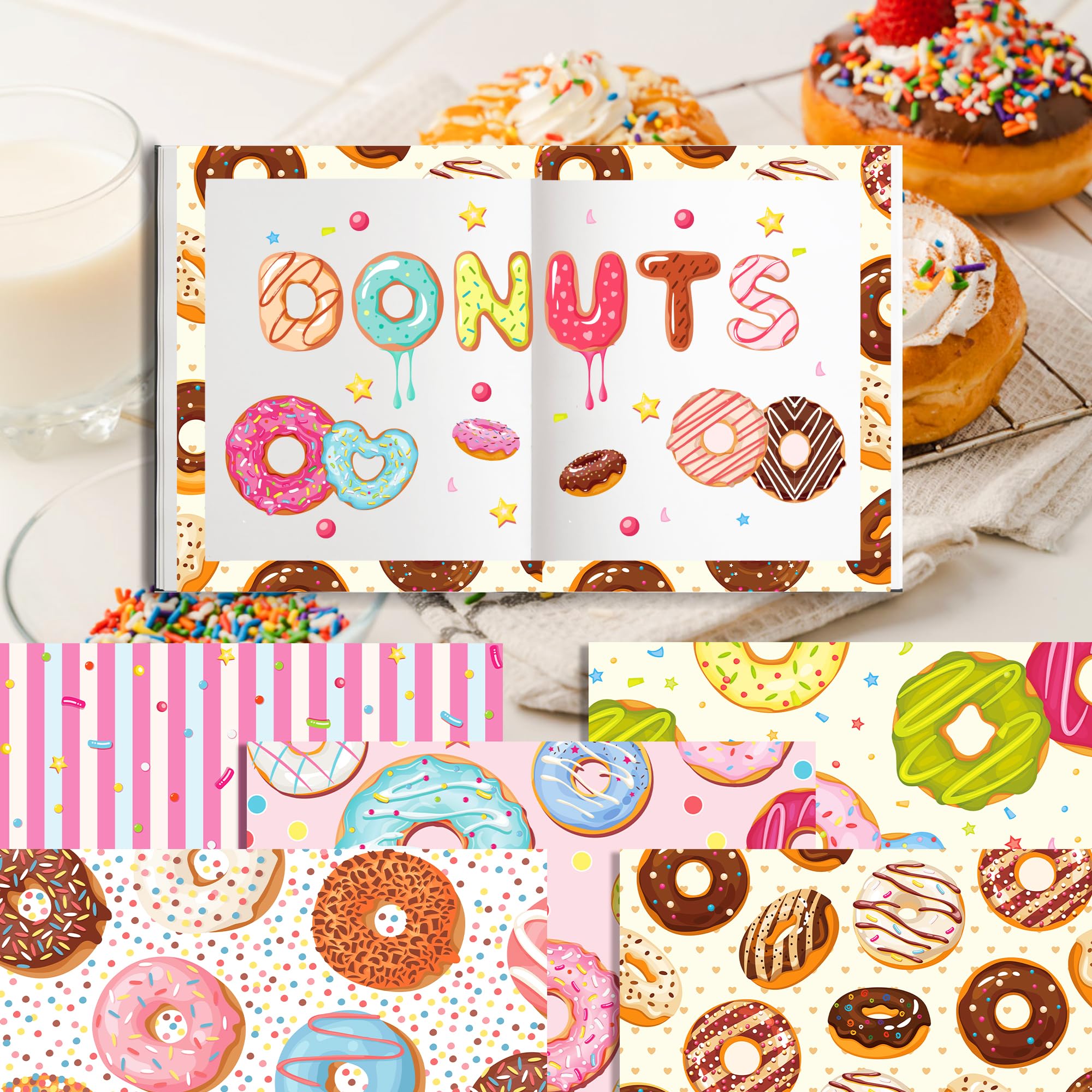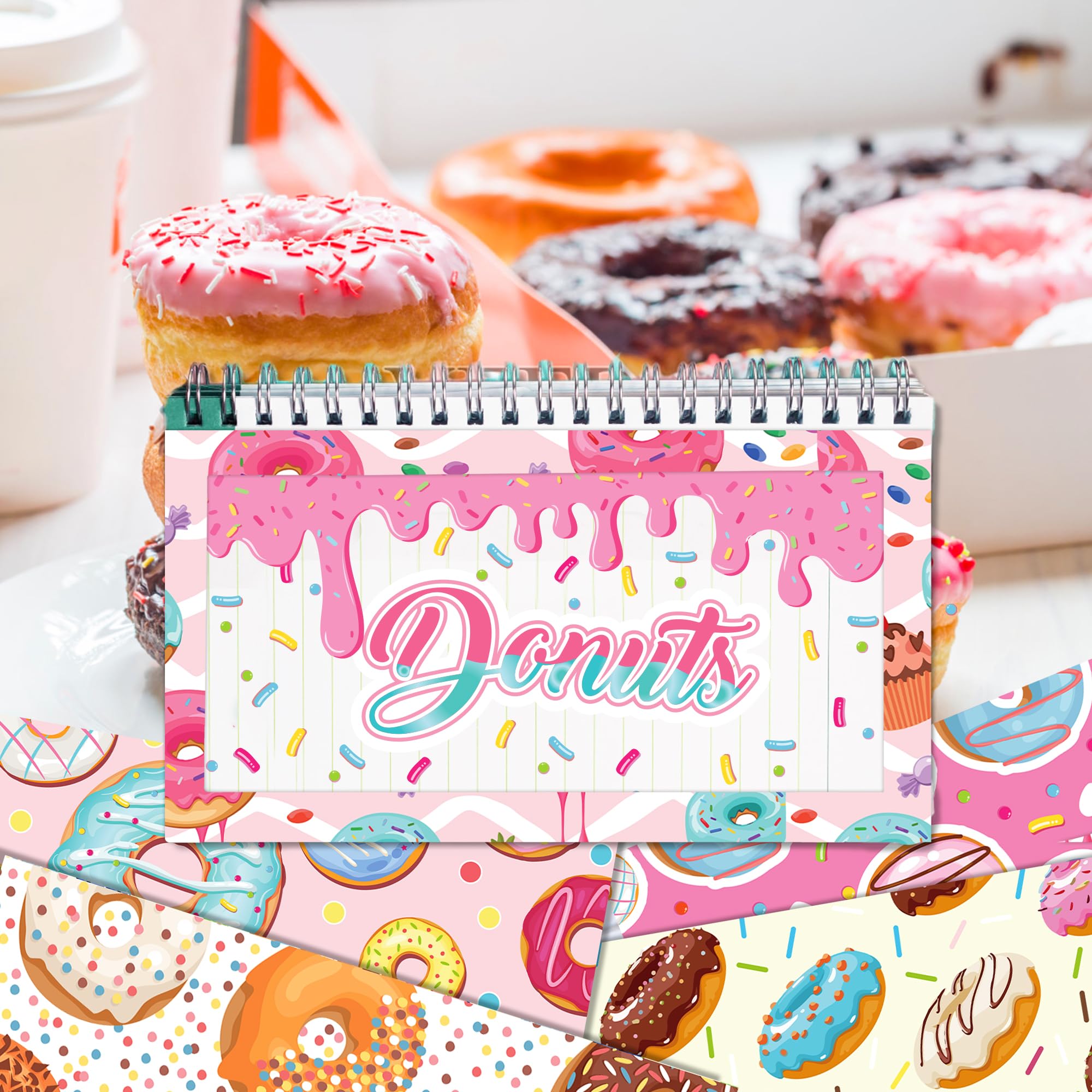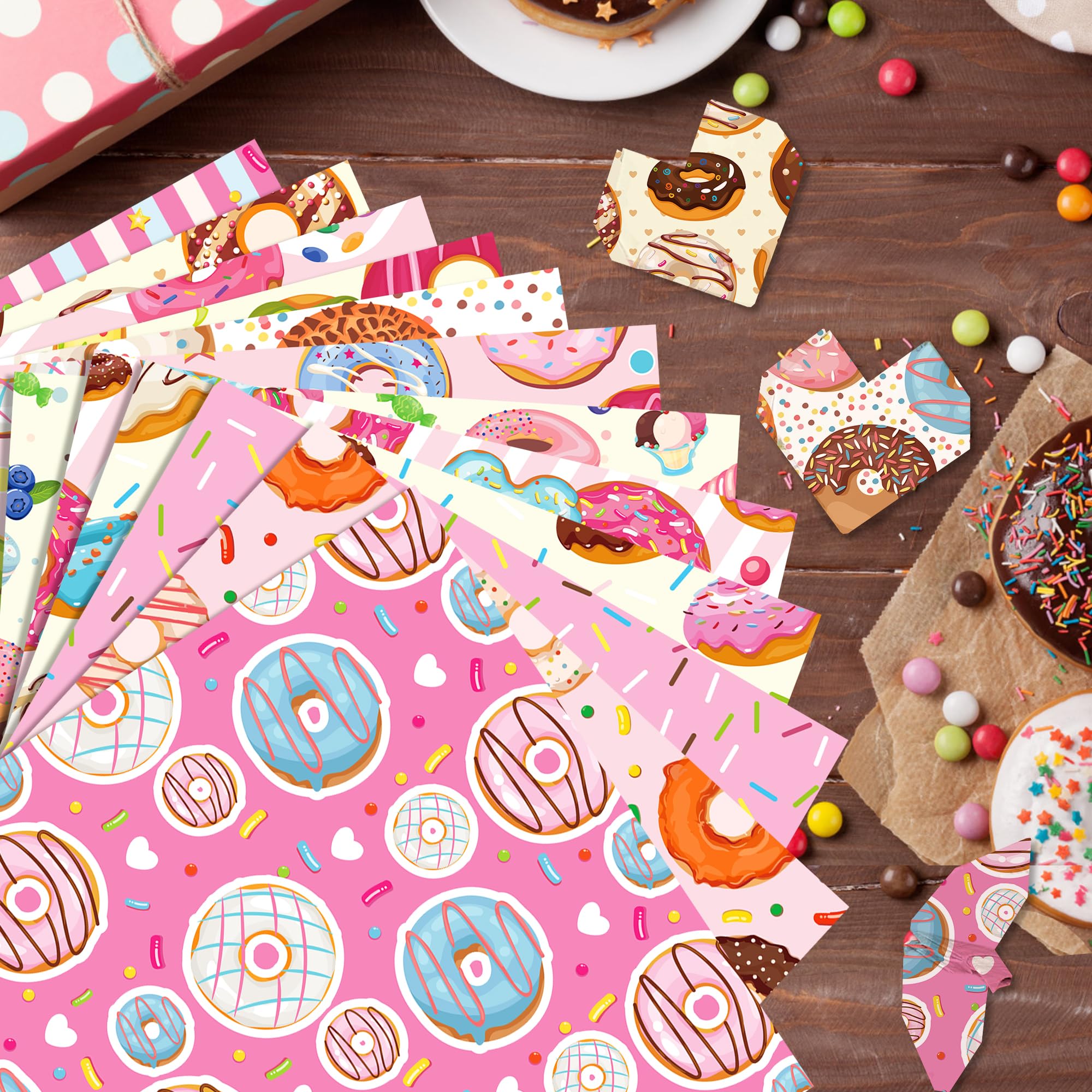 24 の PCS のドーナツのスクラップブッキングのペーパー パッド、漫画のデザートはスクラップブッキング DIY の背景の作成のための装飾的なペーパーを味方しました