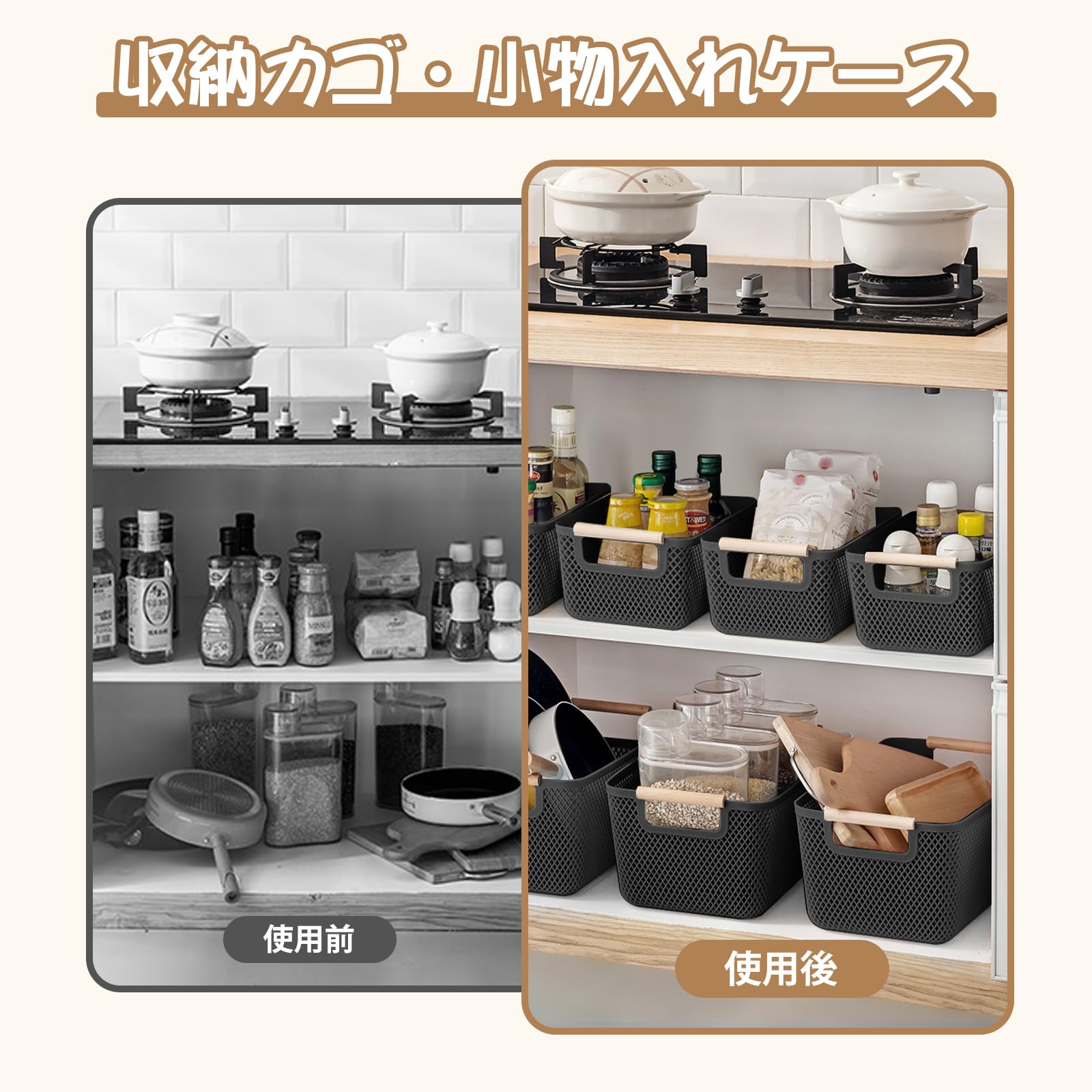 RAIN QUEEN 収納カゴ 収納ボックス 小物入れケース 白 プラスチック ポリプロピレン 収納バスケット 8個セット 雑貨整理 卓上収納 取っ手付き 小物 整理整頓 クローゼット 押入れ/洗面所/リビング/キッチン収納