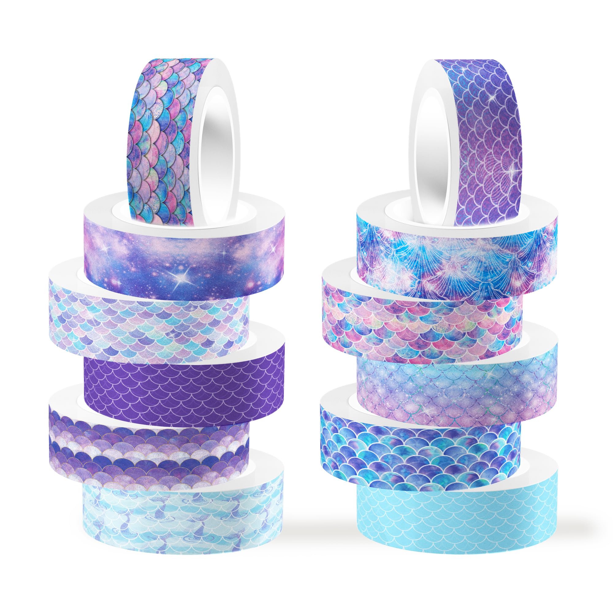 人魚和紙テープセット 12巻、海洋動物和紙テープ、DIY装飾テープ。スクラップブッキングの装飾、アートジャーナリングのアクセサリー、クラフトプロジェクトなどに適しています