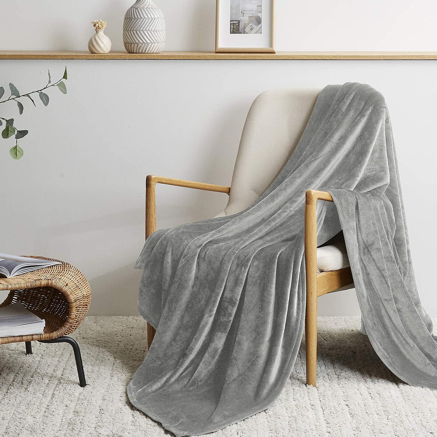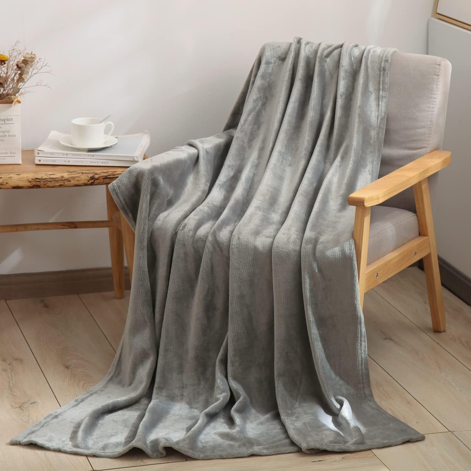 BEDELITE 毛布 膝掛け ブランケット 大判 あったか マイクロファイバー フランネル ひざかけ もうふ 春夏秋冬 オールシーズン 軽量 洗える 静電気防止 ふわふわ 柔らかい ライトグレー 140×100cm