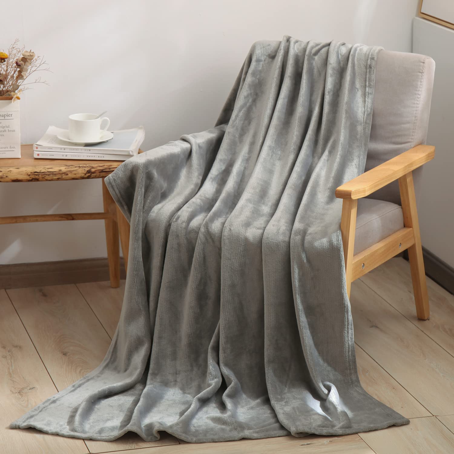 BEDELITE 毛布 シングル マイクロファイバー フランネル フリース ブランケット もうふ 暖かい 毛布 冬 柔らかい 肌触り 洗える 昼寝 ソファーベッド用 プレゼント ライトグレー 140×200cm