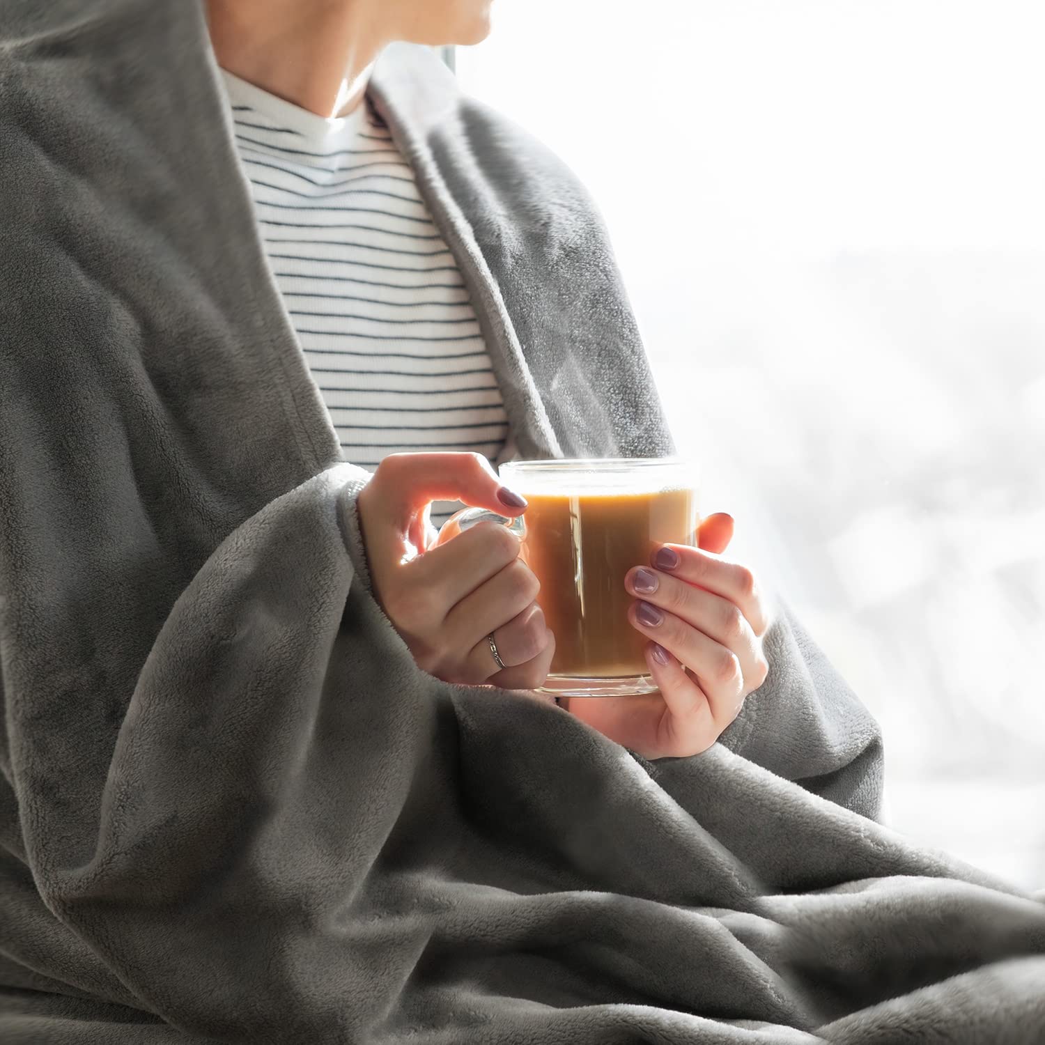 SE 毛布 ハーフケット ブランケット 冬用 ひざ掛け大判/肩掛け/子供毛布 ふわふわ 暖かい 軽量 洗える マイクロファイバー フランネル 静電気防止 オールシーズン 141X101cm グレイブラック 「SE Softexly」