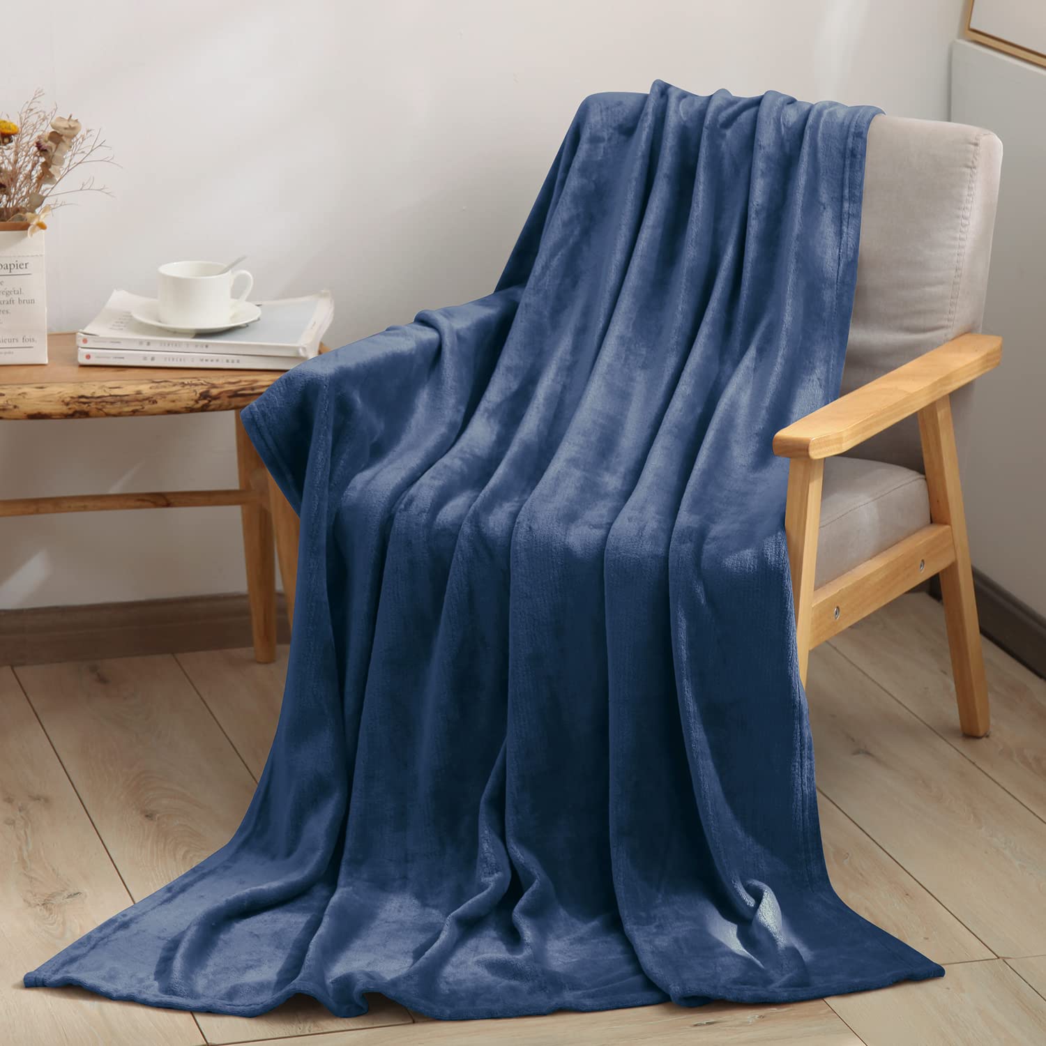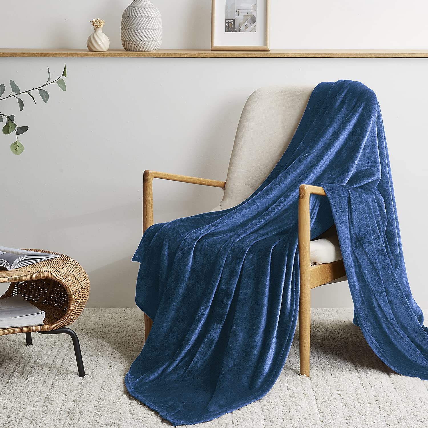 BEDELITE 毛布 シングル ブランケット 大判 あったか マイクロファイバー フランネル 膝掛け もうふ 春夏秋冬 オールシーズン 軽量 洗える 静電気防止 ふわふわ 柔らかい ネイビー 140×200cm