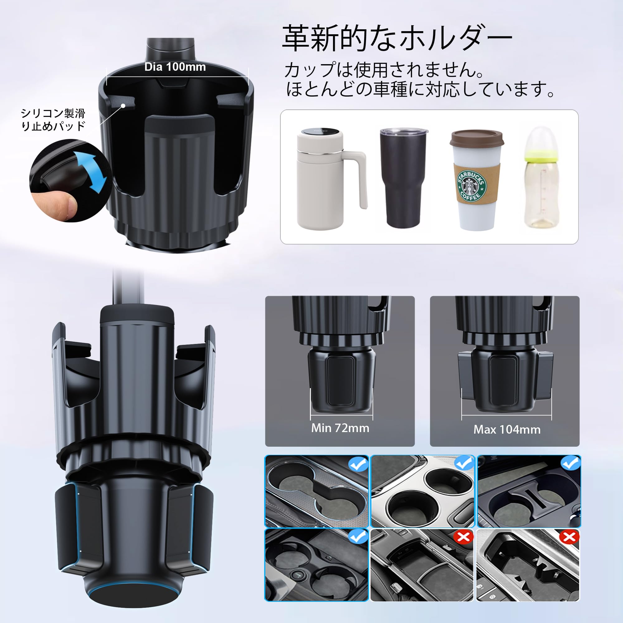 車用マグカップ タブレットホルダー、iPad用カップホルダーカーマウント(調整可能なアーム付き)タブレット、iPhone 3-13インチ対応 iPad Pro、Air、Mini、Fire、iPhone 15、Galaxy S24、Z Fold 5