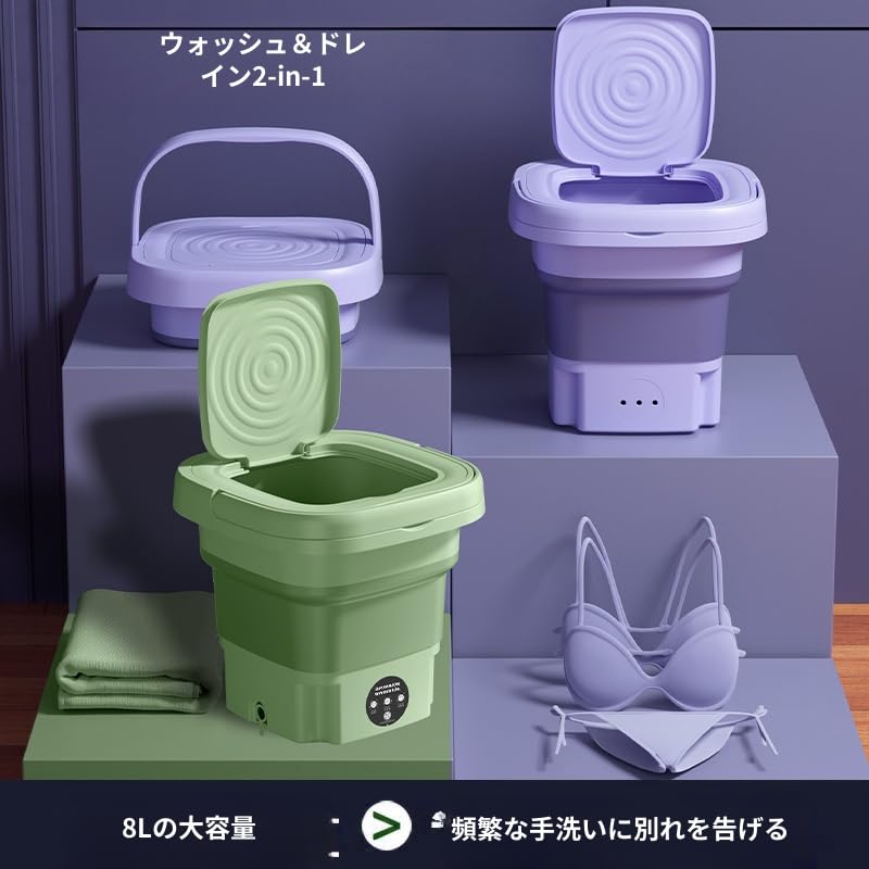 折り畳み洗濯機 【8 L|2分脱水10/15分洗濯】 小型ポータブル 洗濯機ミニ洗濯機 小型 ポータブル 操作簡単 高性能 洗濯 持ち運び 下着 靴下 ベビー服 タオル 小物用 急速脱水 アパート 寮 キャンプ 旅行 節水・節電力