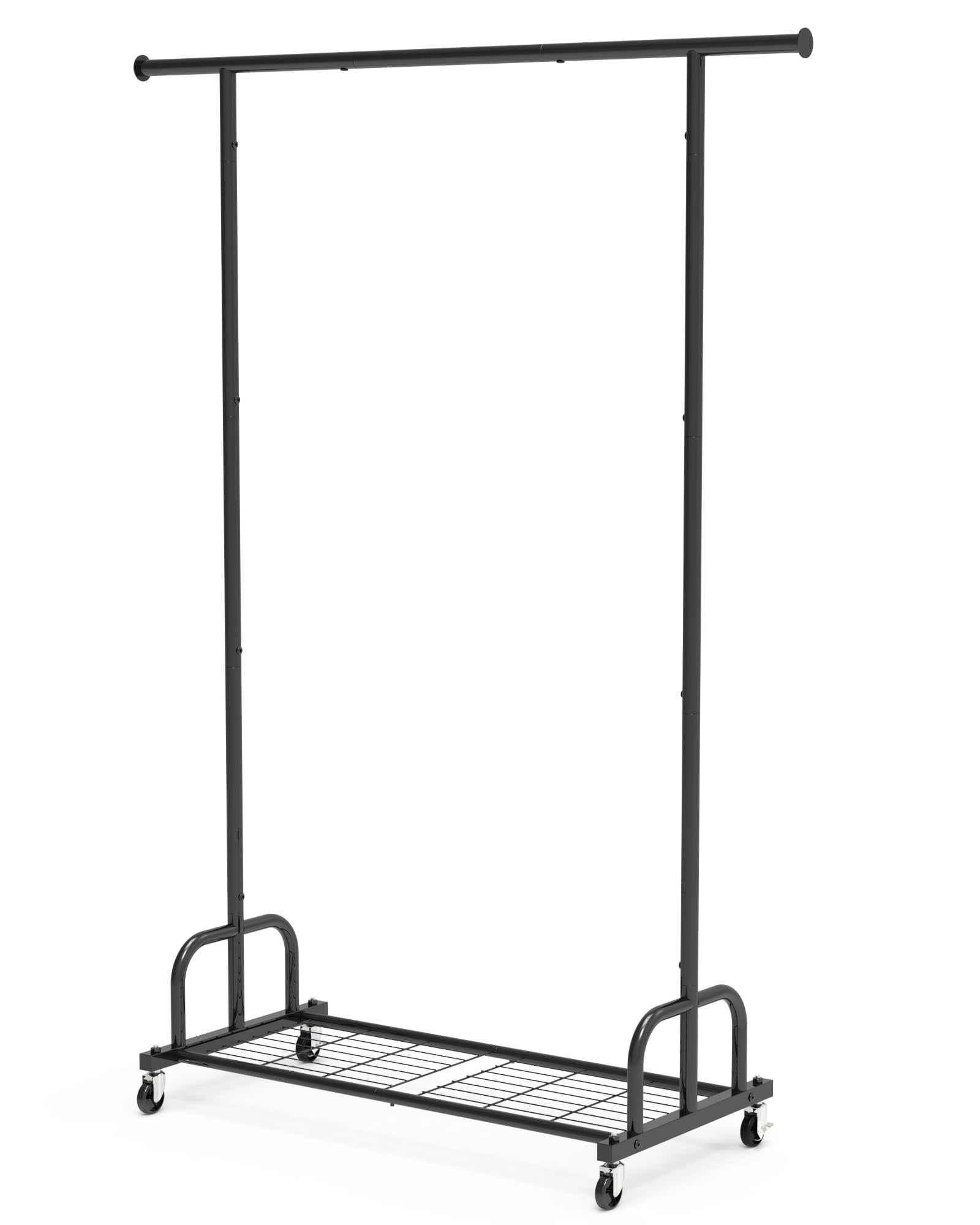 ハンガーラック シングル パイプハンガー 物干しスタンド キャスター・ネット付き 縦横伸縮タイプ 太パイプ 直径26.5mm 頑丈 軽量 幅90~155×奥行43×高さ90~160cm 耐荷重40kg 2年品質保証