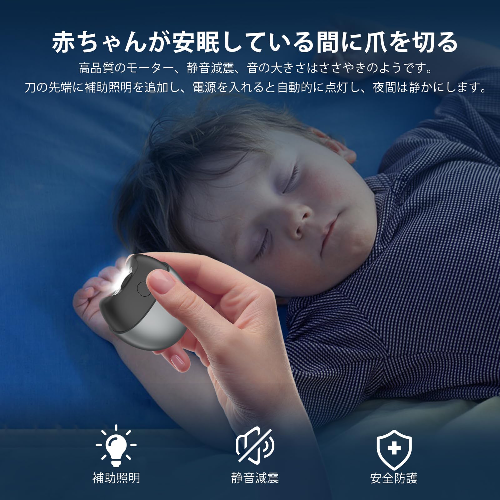 電動爪切り 電動爪やすり 自動爪切り 爪削り 爪やすり 爪ポリッシャー LEDライト Type-C充電式 2段階スピード 爪の傷を防止 安全 低騒音 電動爪やすり 爪の傷を防止 角質ケア 軽量 操作簡単 持ち運び簡単 子供/大人/高齢者に適用 安全スイッチ付き 日本語取扱説明書 (ブラック)