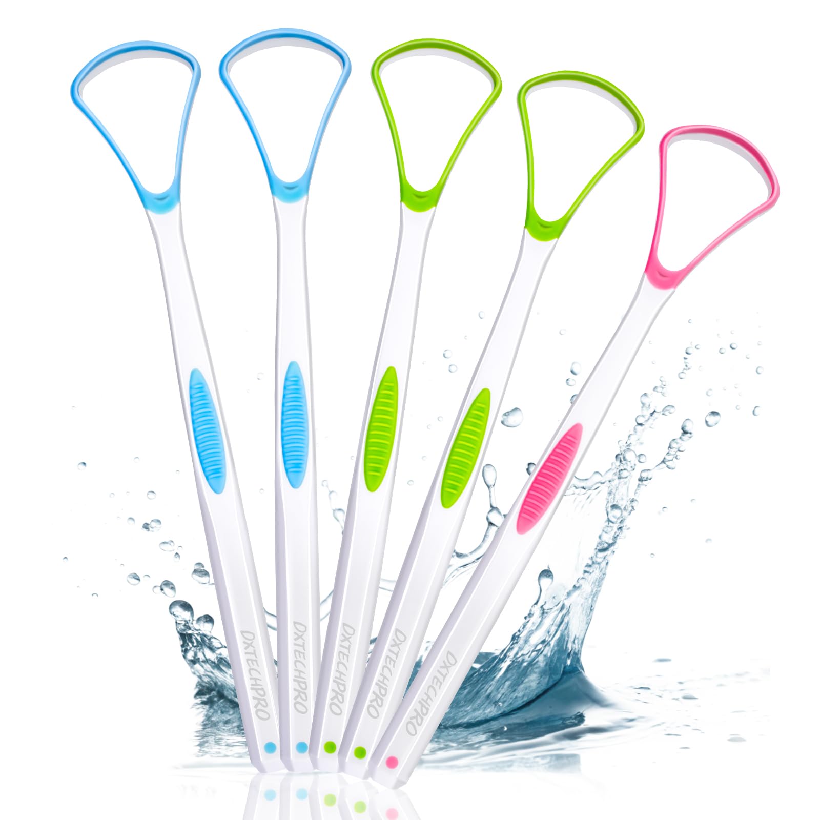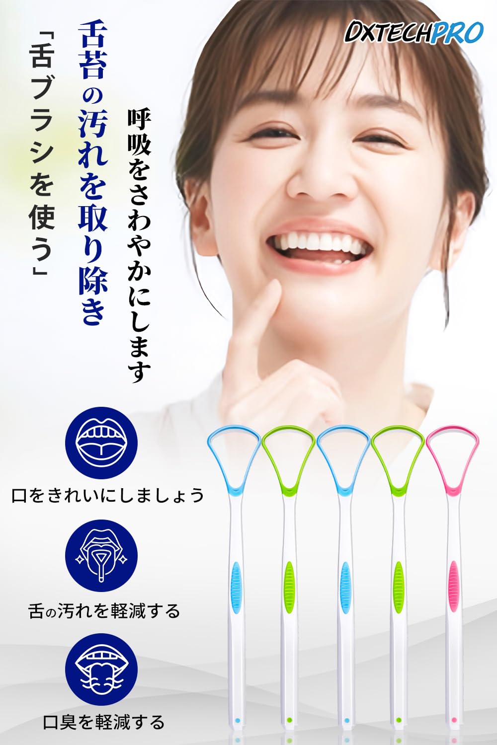 DXTECHPRO 5本3色 舌ブラシ シリコン 舌に優しく 舌クリーナー 舌磨き ブラシ 両面用 舌苔除去 舌専用クリーナー したみがき ブラシ 舌みがき 舌歯ブラシ 舌苔取り(2本ブルー 2本グリーン 1本ピンク)