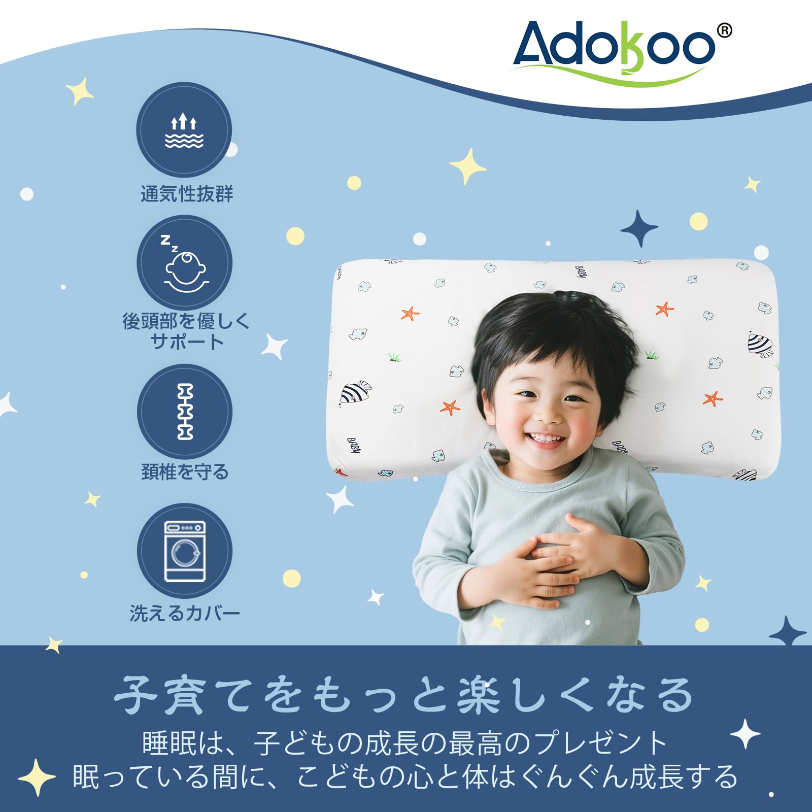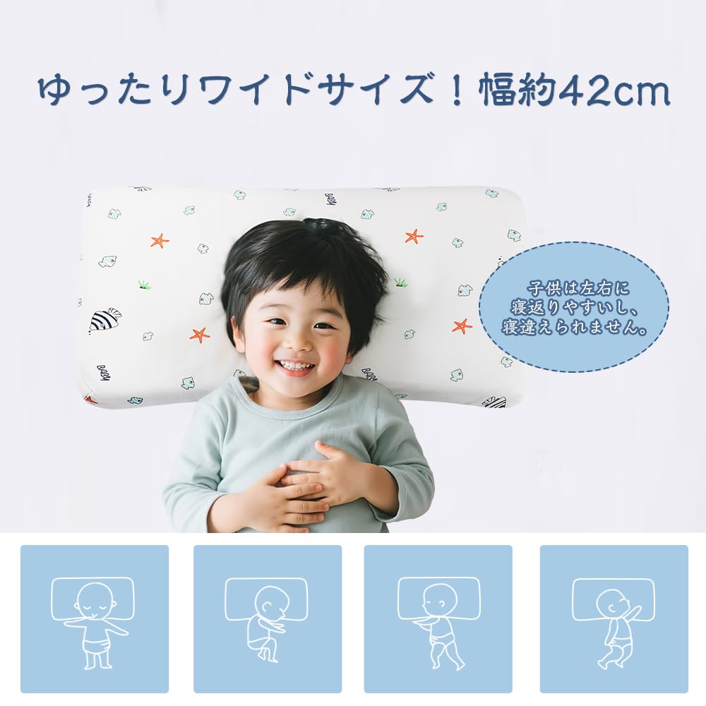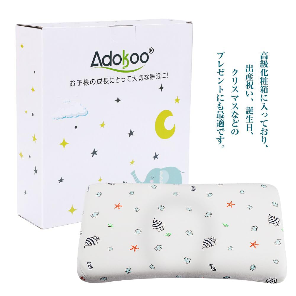 Adokoo 子供枕 向き癖防止枕 子ども用まくら 低め 快眠 低反発ピロー 絶壁頭 斜頭 寝姿を矯 正 睡眠まくら キッズ枕 男女兼用 汗とり 綿100% 通気 プレゼント 小魚柄