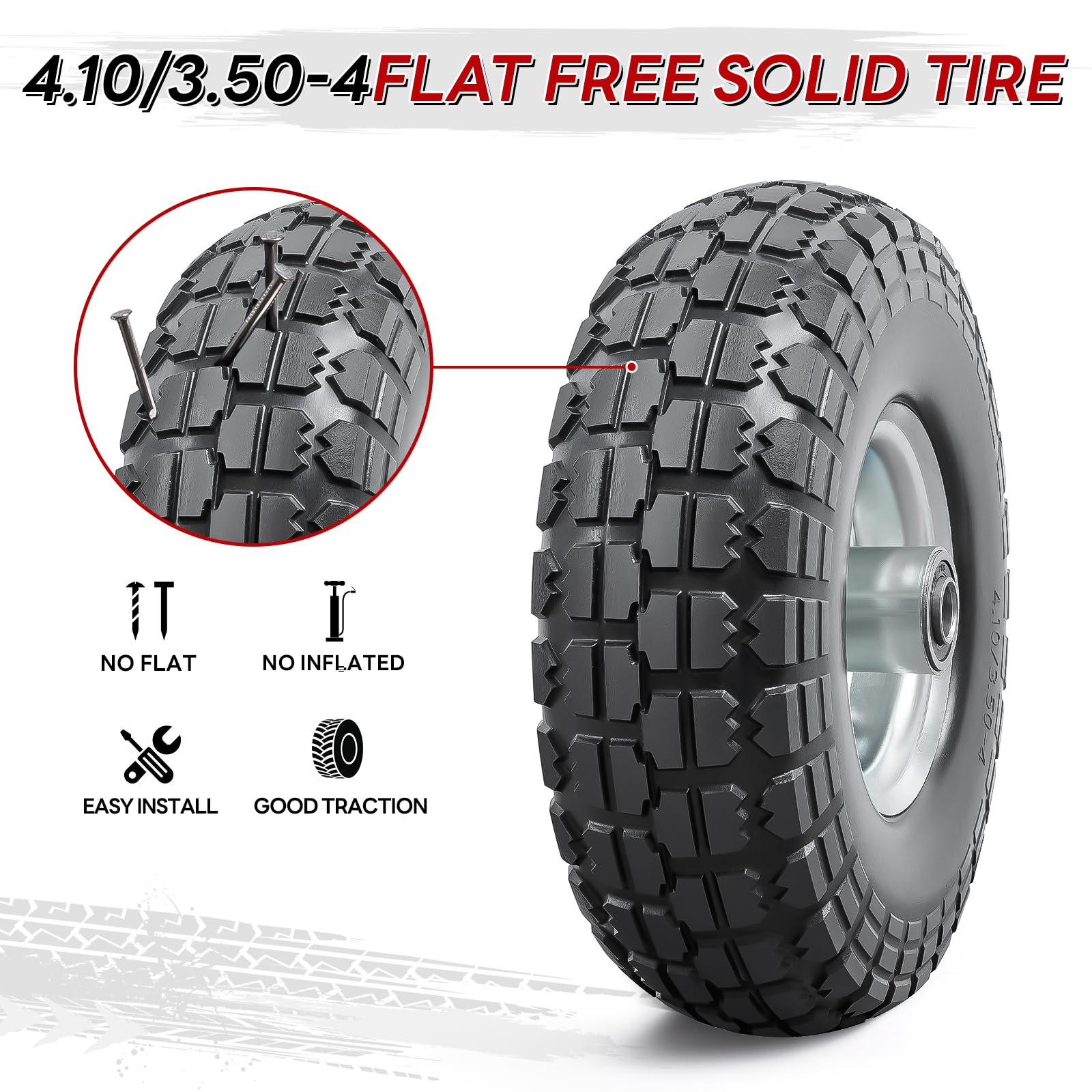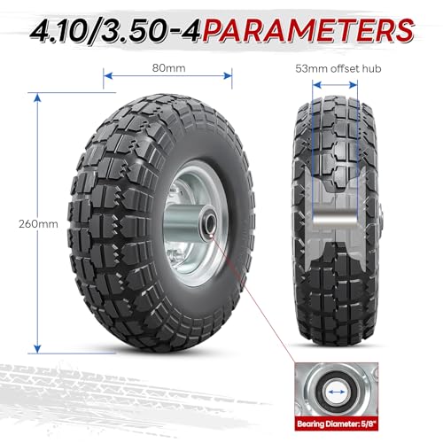 PaoWin 2本 4.10-4 タイヤ,3.50-4 タイヤ,4.10/3.50-4 Tire, 適用 ハンドトラック/芝刈り機/ハンドカー,リム直径4インチ,P-040