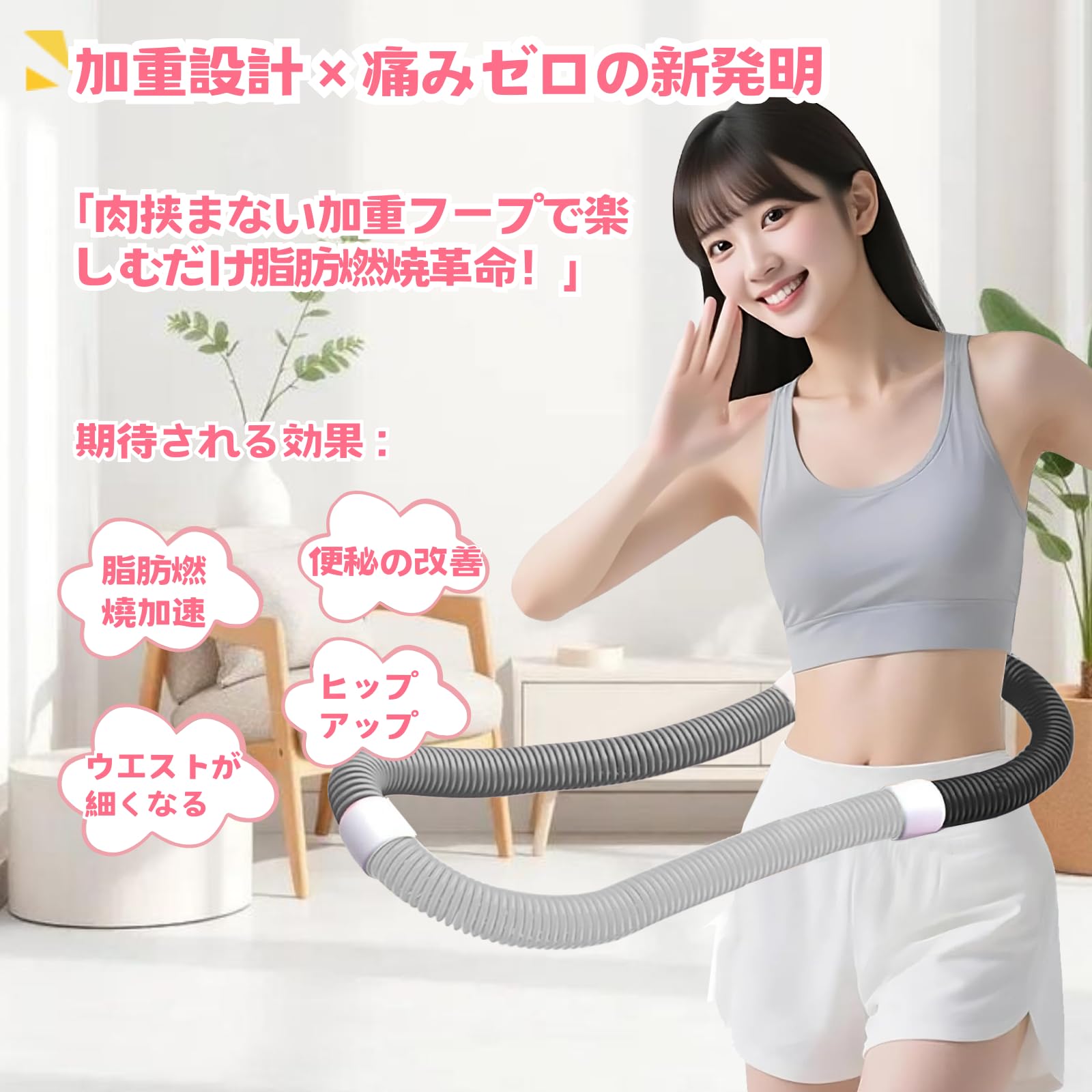Bookwarm【2025新登場】1.2kg フラフープ ウェイト付き ベリー フィットネス PVCソフトスプリングフープ 折りたたみ式 ポータブル フラサークル 筋トレ (ウエスト・背中・脚・胸 エクササイズ) 室内/公園用 男女兼用