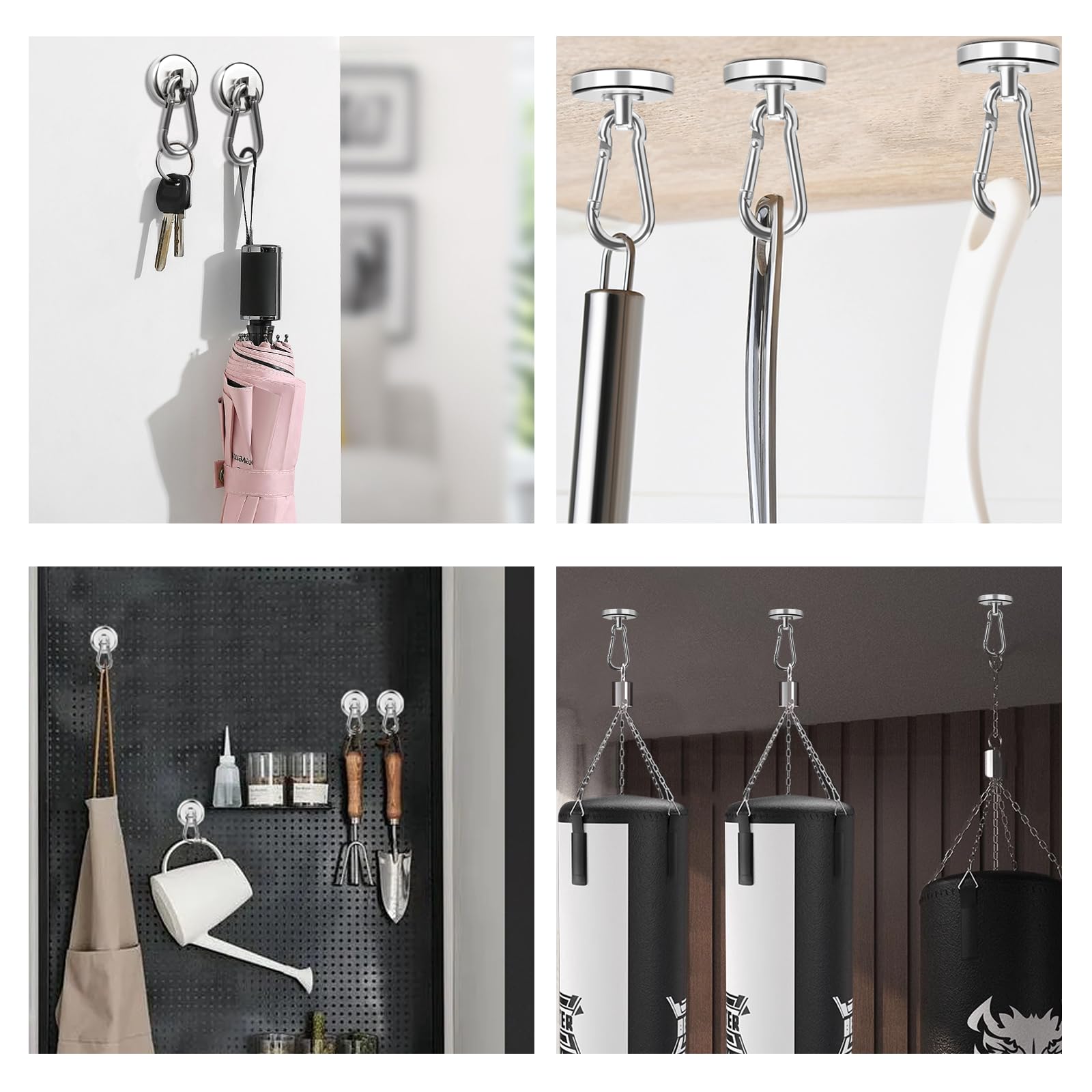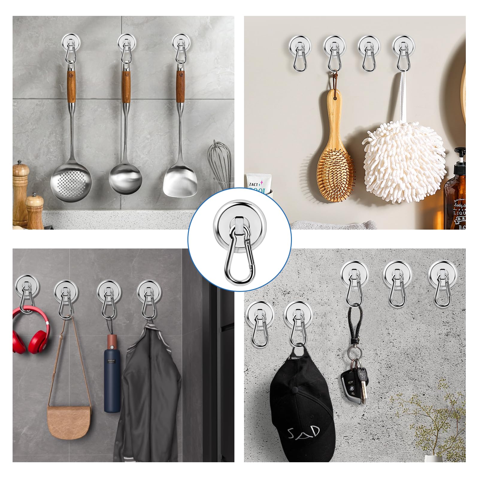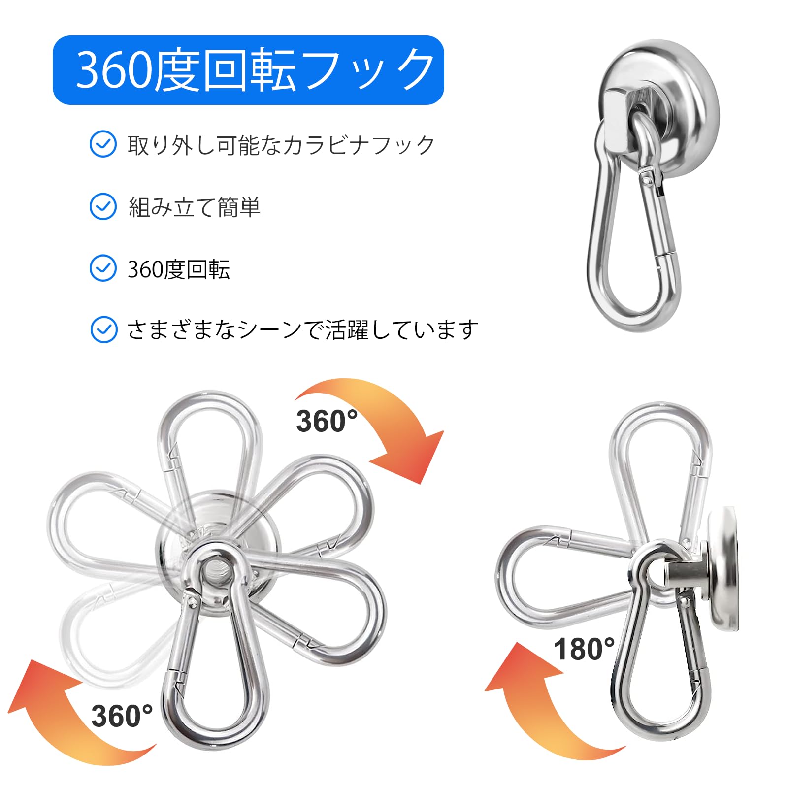 映澤 カラビナ フック 超強力 マグネット フック 垂直荷重63kg ニッケルメッキ 疏水性 錆びにくい 360度回転できる 直径42mm 家庭 イベント 販売場所 キッチン キャンプ 4個セット
