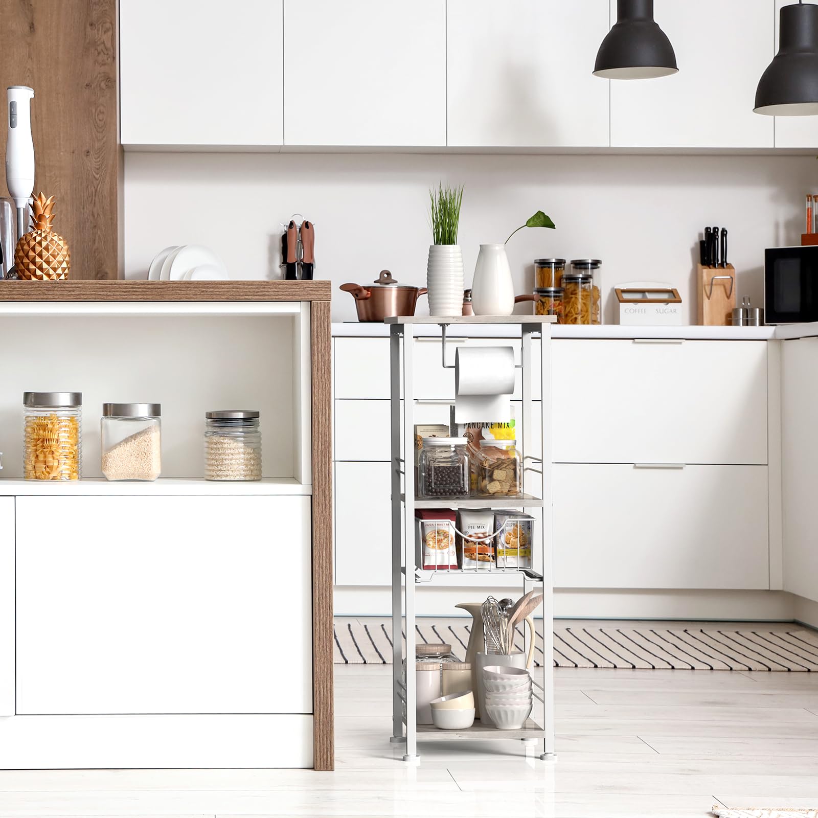 BAOYOUNI コーナーシェルフ 棚 ラック 三角 コーナーラック スリム 玄関 三角 コーナー棚 三角コーナー ラック 木製 収納ラック 角が丸い スタンド四脚 四段 簡単組立 リビング/キッチン/浴室用 40x40x106cm