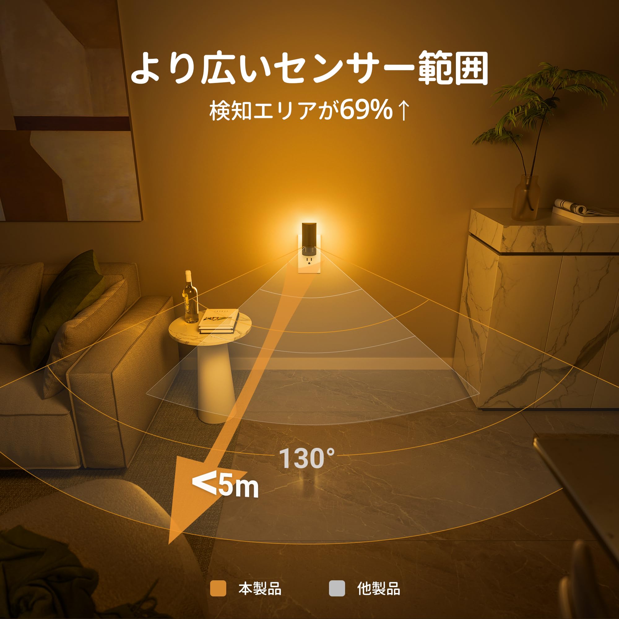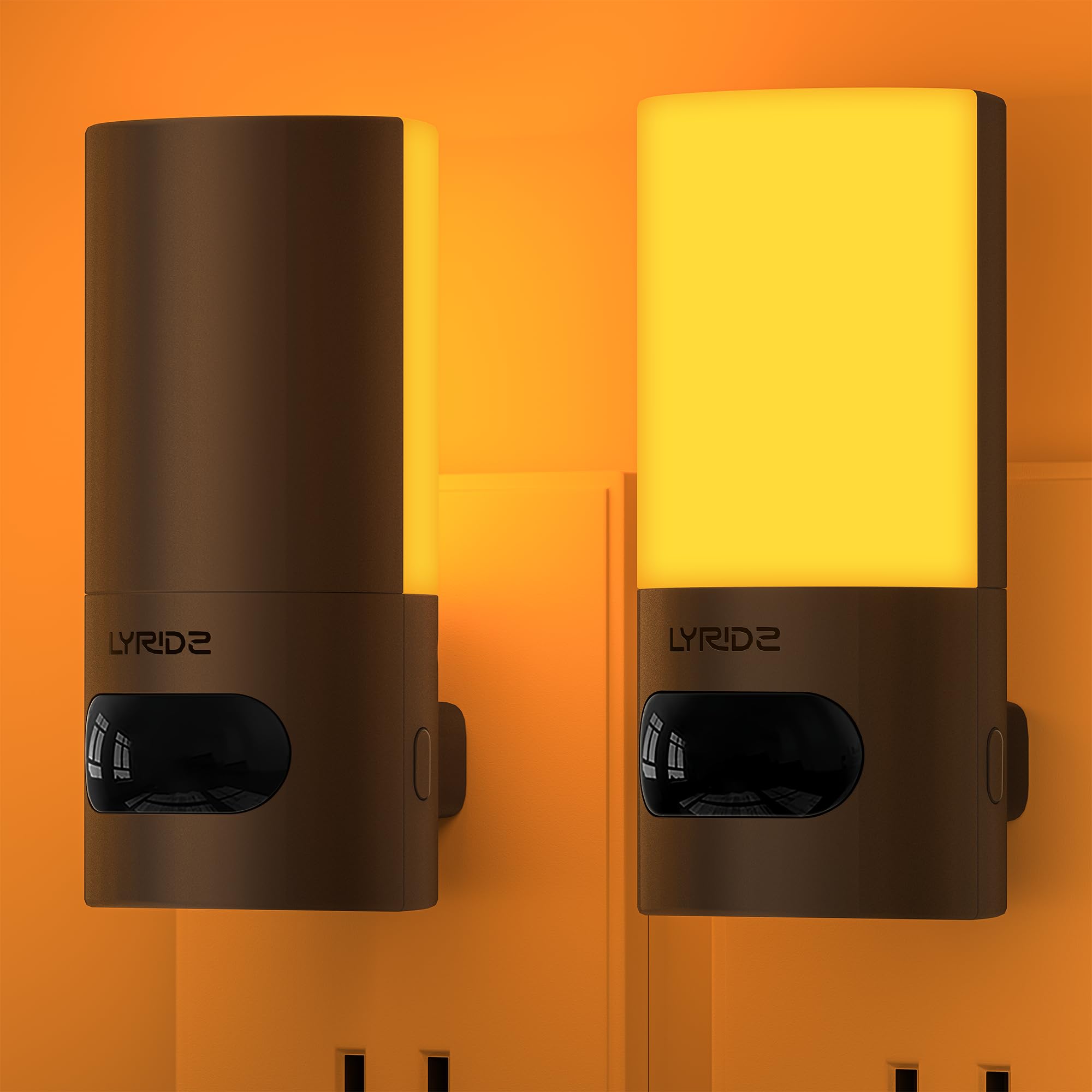 Lyridz センサーライト 室内 300°回転可 足元灯 人感センサーライト コンセント 超高輝度150ルーメン 明るさ調節・点灯時間設定可能 フットライト 省エネ 廊下 寝室 玄関 階段 電球色 (2個入り)