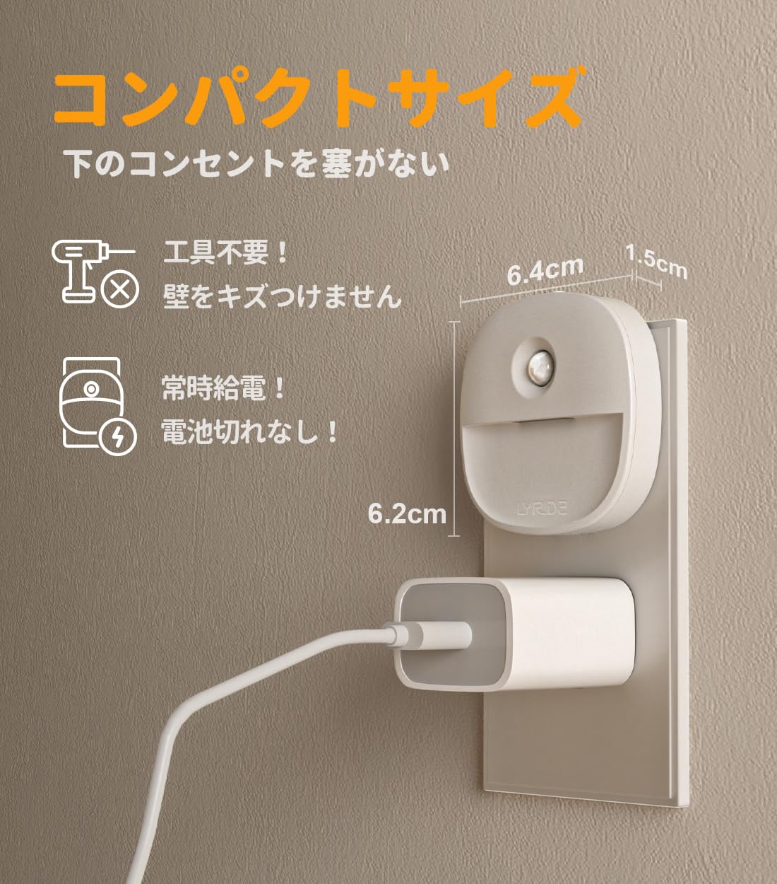 Lyridz センサーライト 室内 足元灯 コンセント 常夜灯 無段階調光 フットライト 人感センサー 明暗センサー LED 足元ライト 実用3モード ナイトライト 電球色 省エネ 廊下 寝室 玄関 階段 【2個セット·PSE取得済·日本語取説】