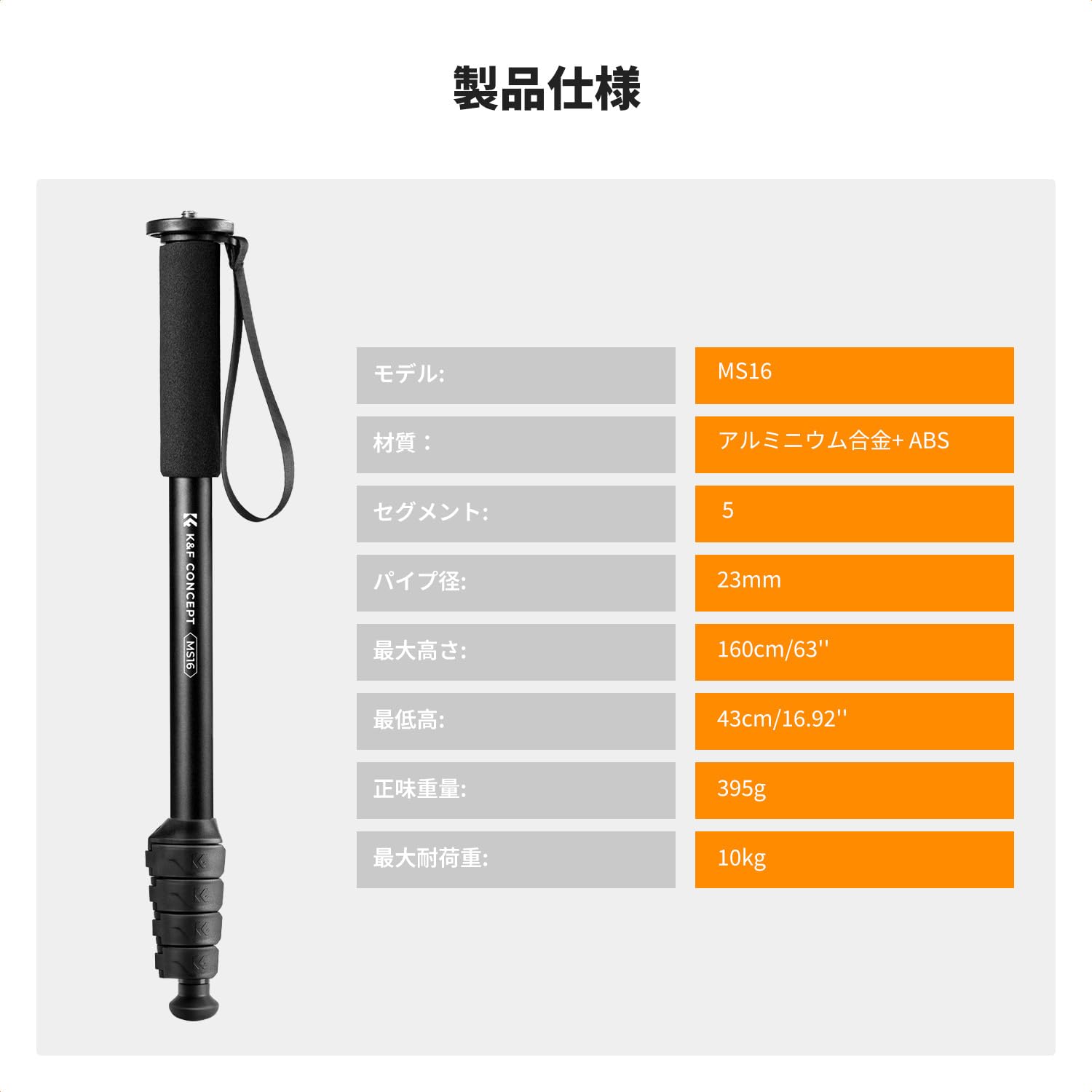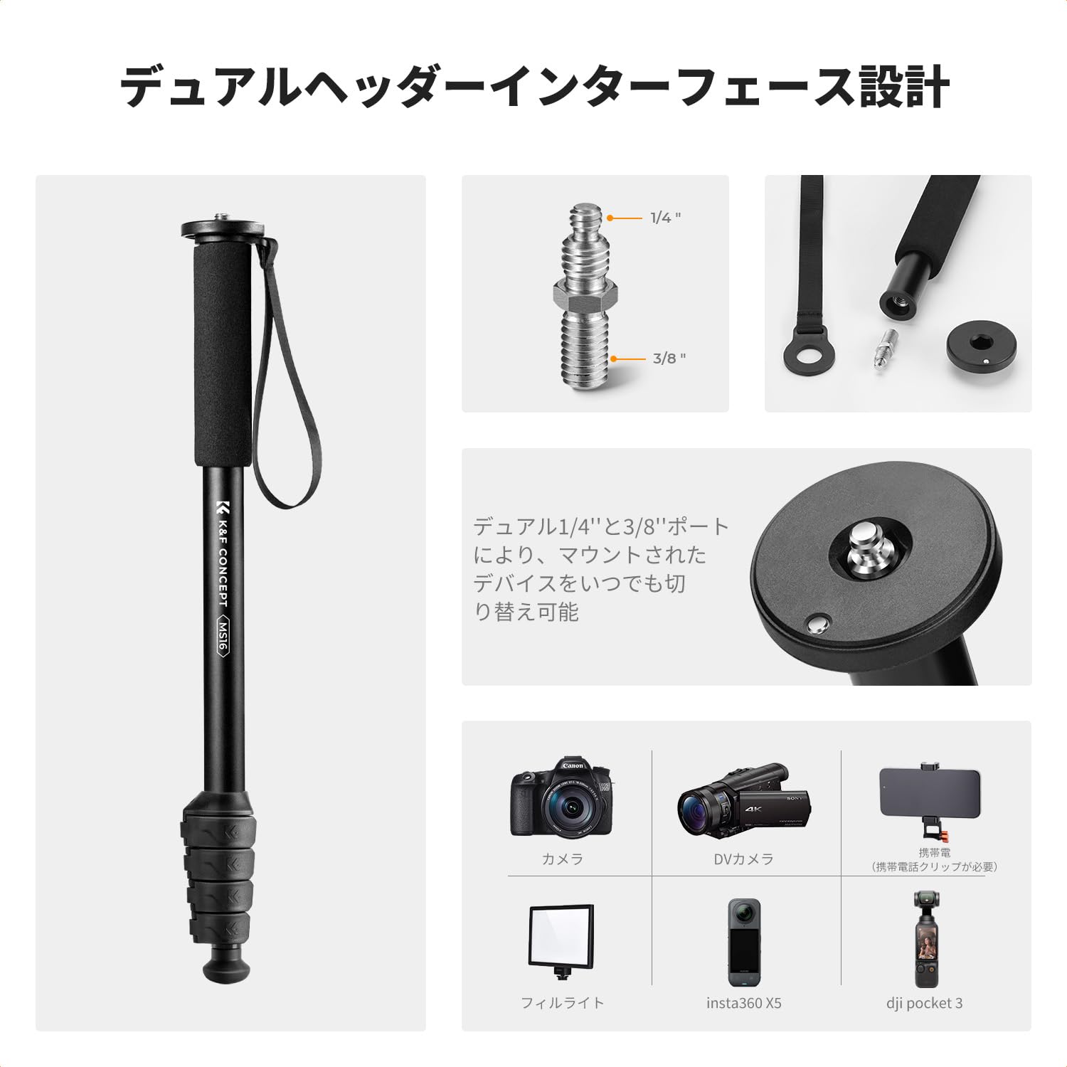 koolehaoda カメラ用一脚+取り外し可能な三脚サポートベース付K-09雲台、5段伸縮高さ60cm-175cm、最大耐荷重7kg