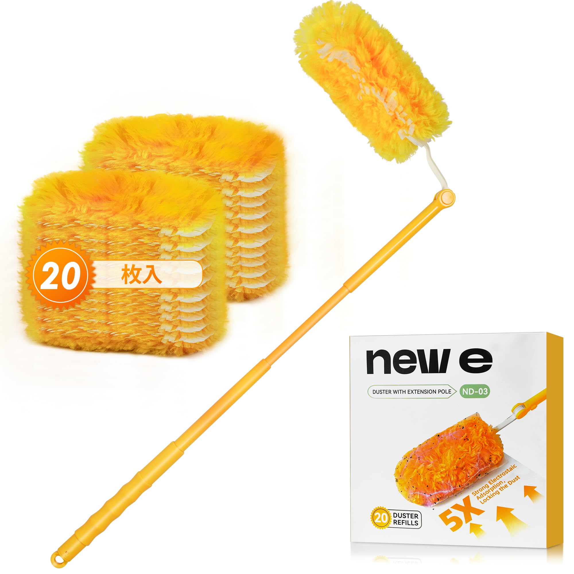 NEWE ほこり取りロングポール はたき ハンディモップ 使い捨 交換用シート20枚付き, 5倍の集塵力 360°埃取り ハンディ デザ 幅広い用途イン/テレビ/車/家/コンピューター/ブラインドに適用