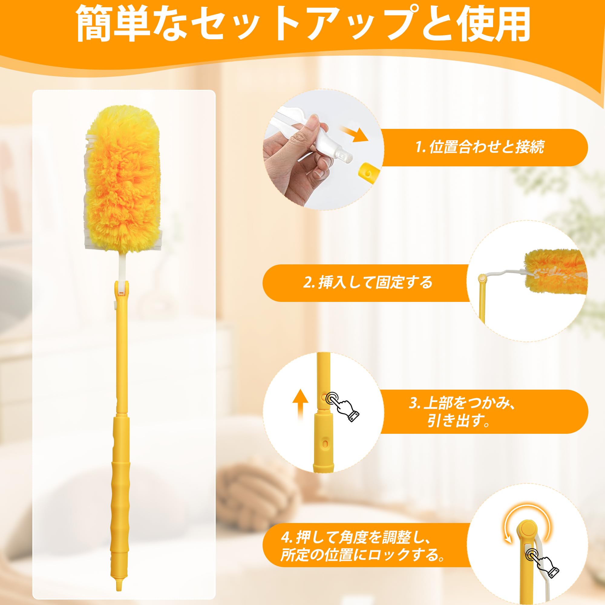 3M 高所モップ ロングハンディモップ 洗える 高所掃除ブラシ高所のクモの巣・ホコリとり取り ハンディ 高所掃除ブラシ 洗える リントフリーマイクロファイバーホコリ取り 長さ調整可能 蜘蛛の巣取り棒 洗車 ほこり取り シーリングファン用