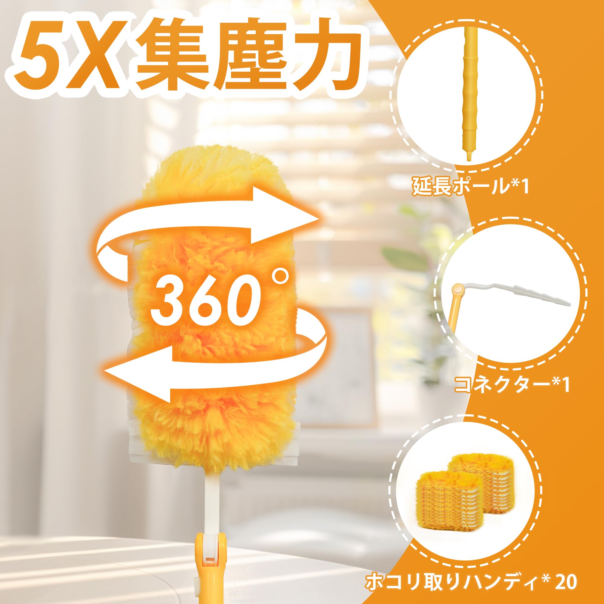 NEWE ほこり取り はたき ハンディモップ 使い捨 交換用シート20枚付き, 4倍の集塵力 360°埃取り ハンディ デザイン/テレビ/車/家/コンピューター/ブラインドに適用