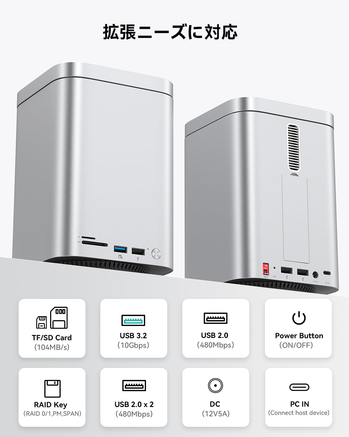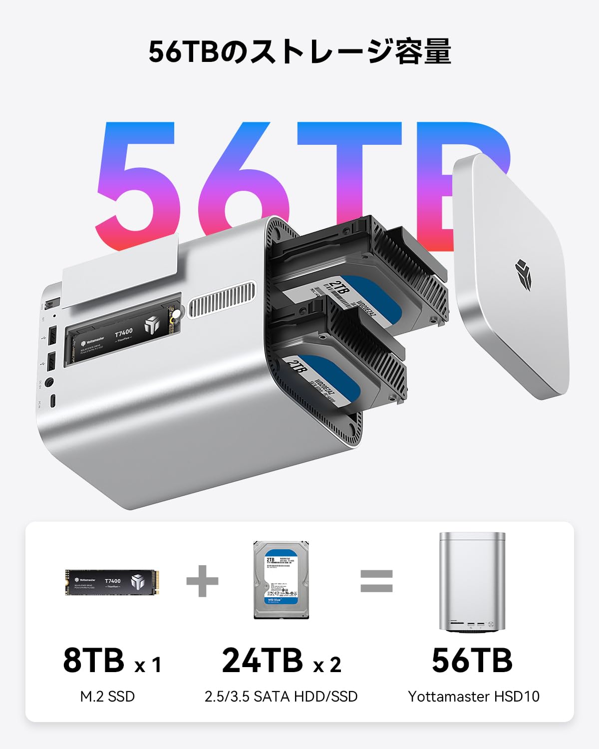 Yottamaster【RAID機能対応】HDDケース 2台、2 Bay 10Gbps アルミニウム合金RAID USB Cケース、3.5