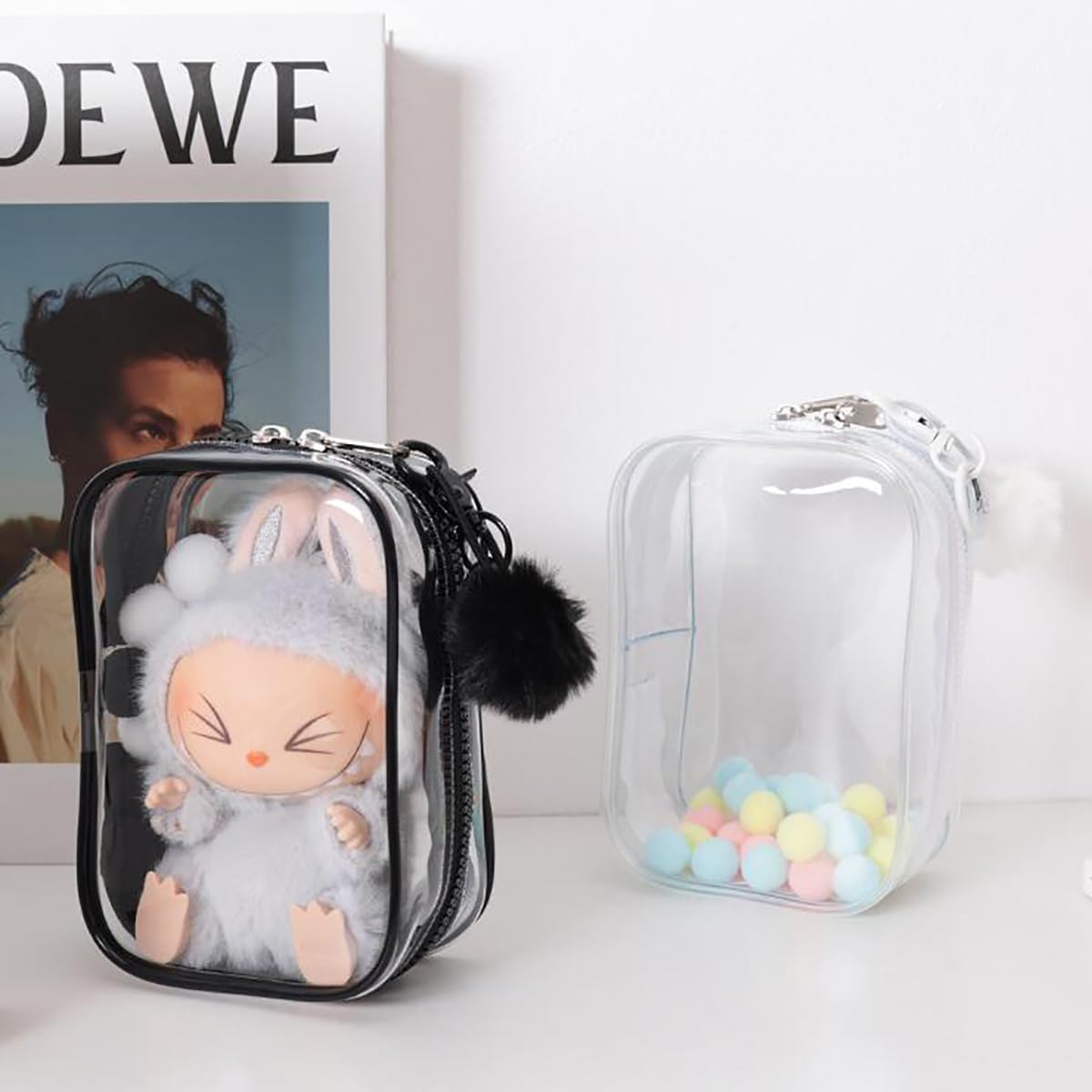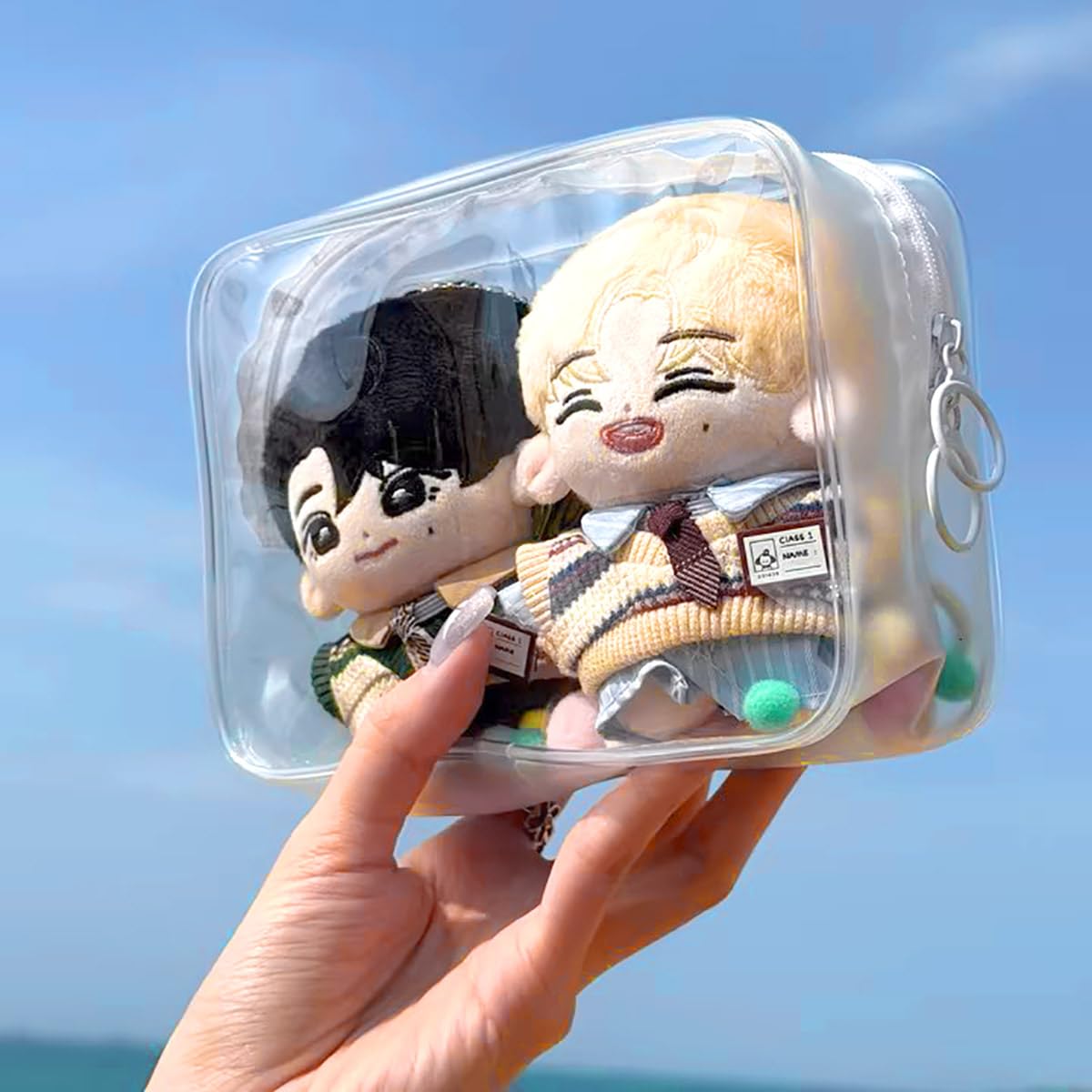 痛バッグ ぬいポーチ 10cm/15cm/20cmサイズ対応 推し活ぬいポーチ 人形の保管場所 全透明 PVCケース 防水・防塵 ジッパー式 ポンポンボール&キーホルダー付 (10cm対応)