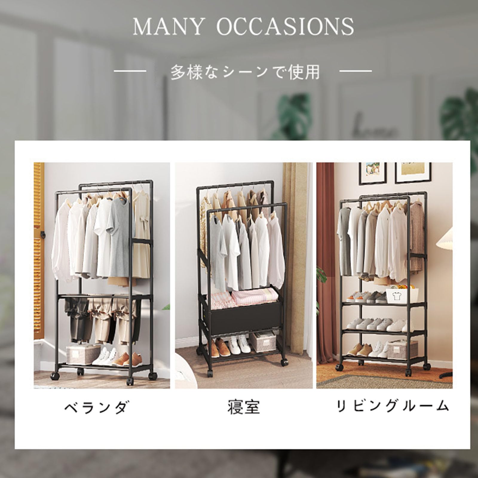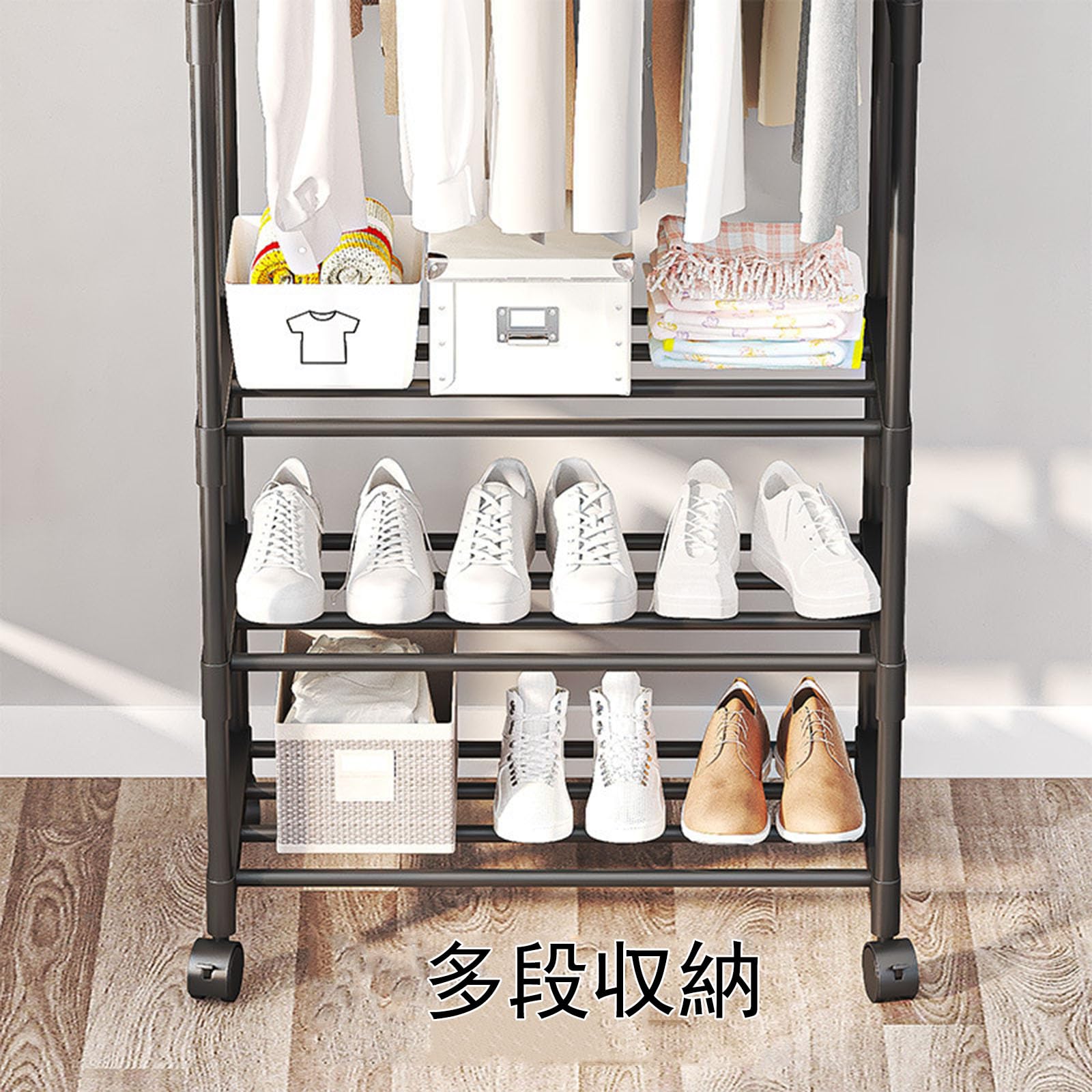 SOURUanly ハンガーラック 衣服掛け キャスター付き 収納ラック 壁際掛け物 掛け収納 洋服掛け キャスター付き 衣類収納 省スペース 軽量 頑丈 コンパクト 簡単組み立て 吊り下げ衣類収納 セーター コートに最適 高耐荷重 ブラック (C)