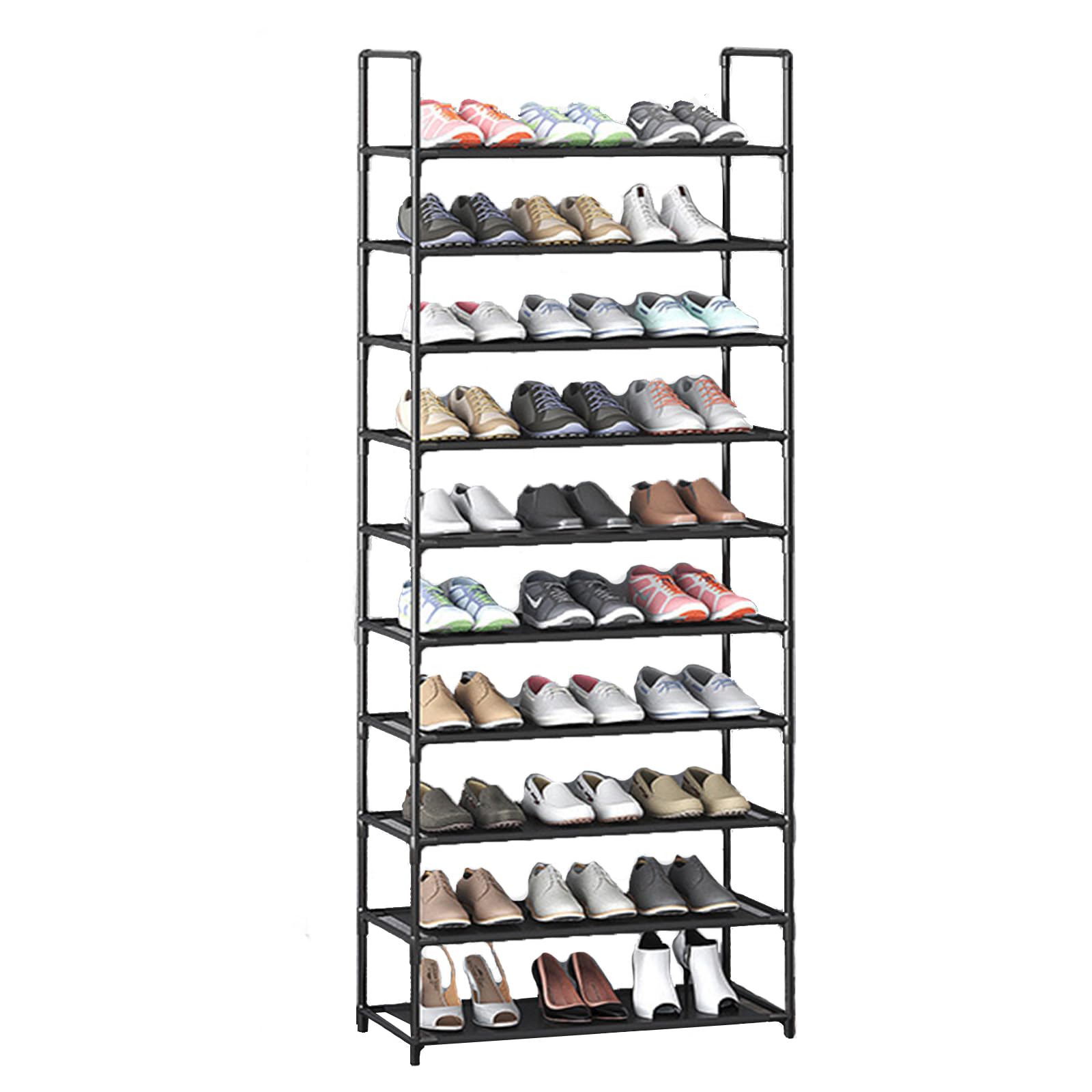 YRCBEHFU 10段シューズラック 靴収納 シューズラックスリム 省スペース 最新防塵版不織布 靴棚 寝室/玄関に靴を効率収納 靴入れ 組み立て式 幅約60×奥行28×高さ175cm ブラック