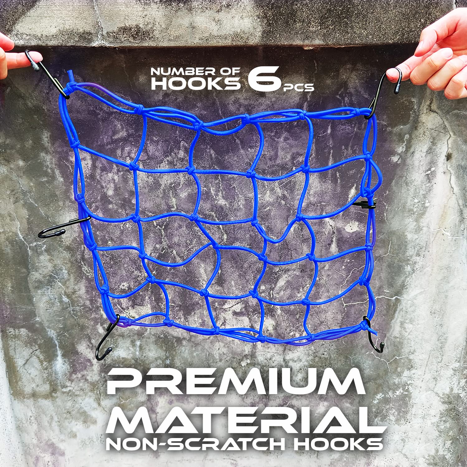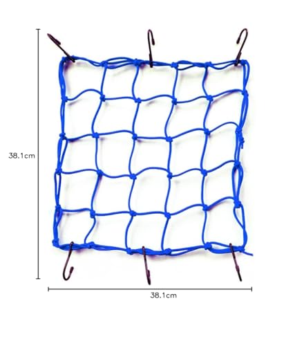 ONIPAX (オニパックス) 15インチ x 15インチ 高弾性バンジーカーゴネット フック6個付き 自転車オートバイ用 (ブルー, 1枚入りネット)